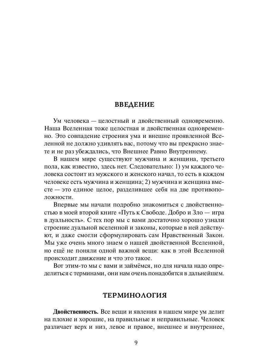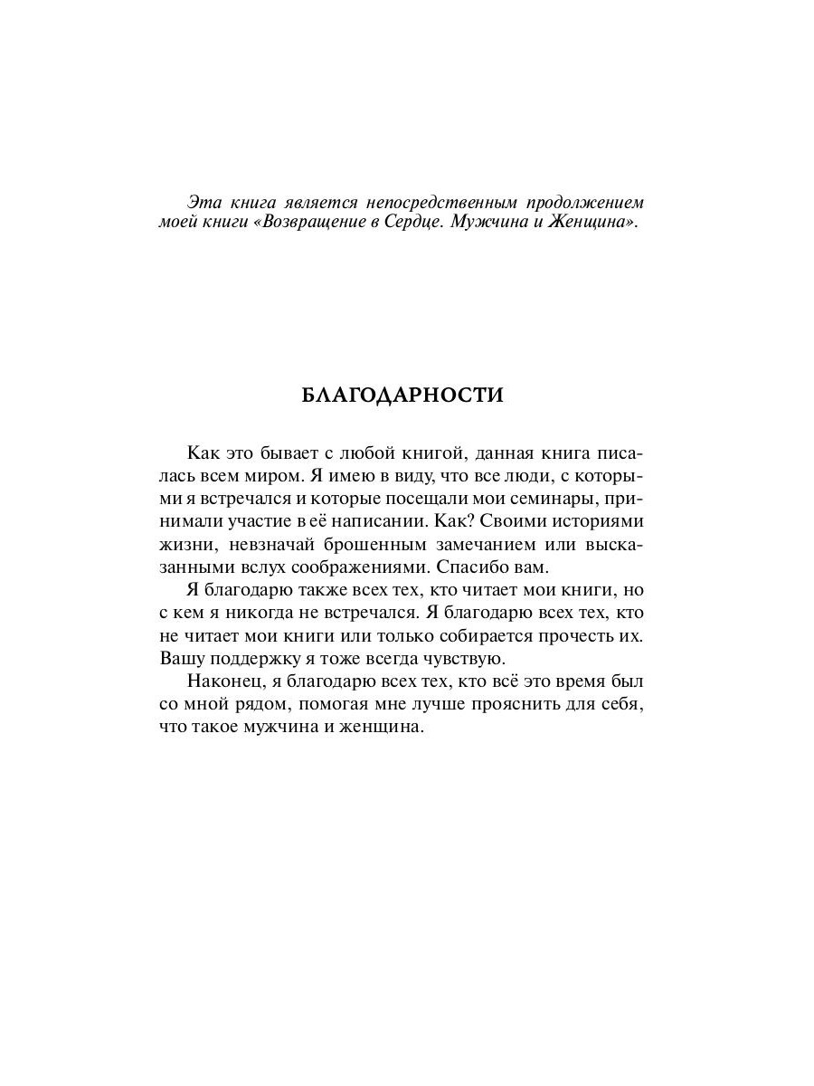 Мужчина и женщина - это те две противоположности, из которых состоит весь наш мир. Все дуальные пары в конечном итоге можно свести к паре "мужчина - женщина". Главное движение, существующее в нашем мире, - движение, которое происходит между мужчиной и женщиной внутри и снаружи. Если в человеке это движение присутствует в чистом, незаблокированном виде, в нем никогда не иссякнет сила жить, эффективно действовать и радоваться жизни.