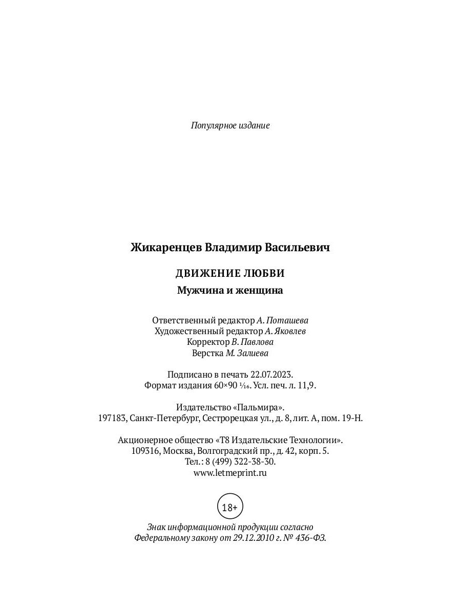 Аннотация: Движение любви. Мужчина и женщина