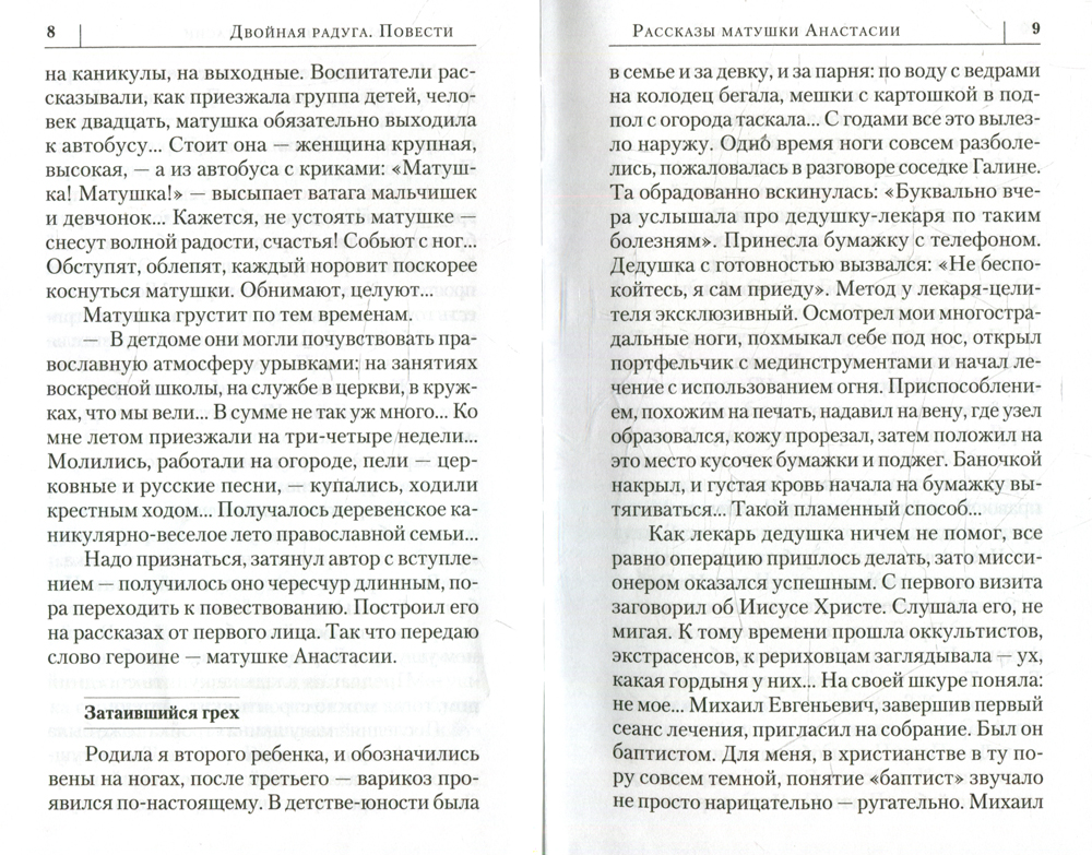 Мастерски написанная проза Сергея Прокопьева отличается прежде всего тем, что обжигает душу достоверностью. Читая повести и рассказы автора, понимаешь, что за его героями стоят конкретные люди, взятые из жизни со всеми скорбями и радостями, духовными исканиями, зачастую непростым путем к Богу. В рассказе «Часовня Семи отроков Эфесских» автор повествует о мытарствах мужественной православной женщины-матери, приложившей неимоверные усилия, чтобы найти пропавшего на Чеченской войне сына и с Божией помощью вызволить его из рабства. Героиня повести «Из рассказов матушки Анастасии» - монахиня. В Православие пришла из протестантизма, немало скорбей выпало на ее долю, но она всегда следовала принципу «вера без дел мертва». Герой повести «90-й псалом» - воин-афганец, который прошел все ужасы войны, не расставаясь с текстом псалма «Живый в помощи Вышняго...» По словам святых отцов, воскрешение души - вот самое великое чудо. Именно о воскрешении души и говорит в этой книге Сергей Прокопьев.| Издательство | Сибирская Благозвонница |