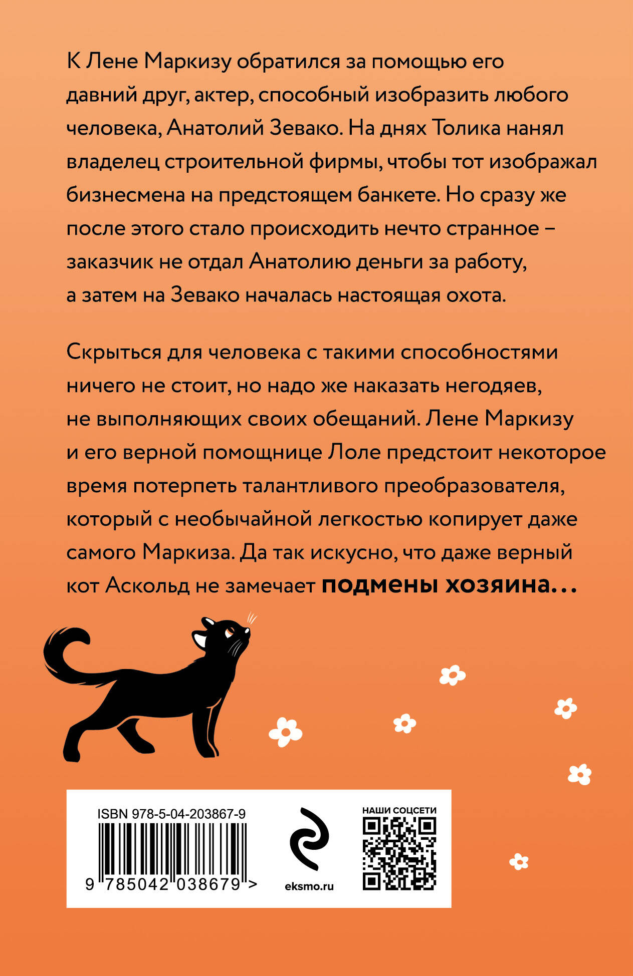 К Лене Маркизу обратился за помощью его давний друг, актер, способный изобразить любого человека, Анатолий Зевако. На днях Толика нанял владелец строительной фирмы, чтобы тот изображал бизнесмена на предстоящем банкете. Но сразу же после этого стало происходить нечто странное - заказчик не отдал Анатолию деньги за работу, а затем на Зевако началась настоящая охота. Скрыться для человека с такими способностями ничего не стоит, но надо же наказать негодяев, не выполняющих своих обещаний. Лене Маркизу, его верной помощнице Лоле предстоит некоторое время потерпеть талантливого преобразователя, который с необычайной легкостью копирует даже самого Маркиза. Да так искусно, что даже верный кот Аскольд не замечает подмены хозяина...| Издательство | ООО "Издательство "Эксмо" |