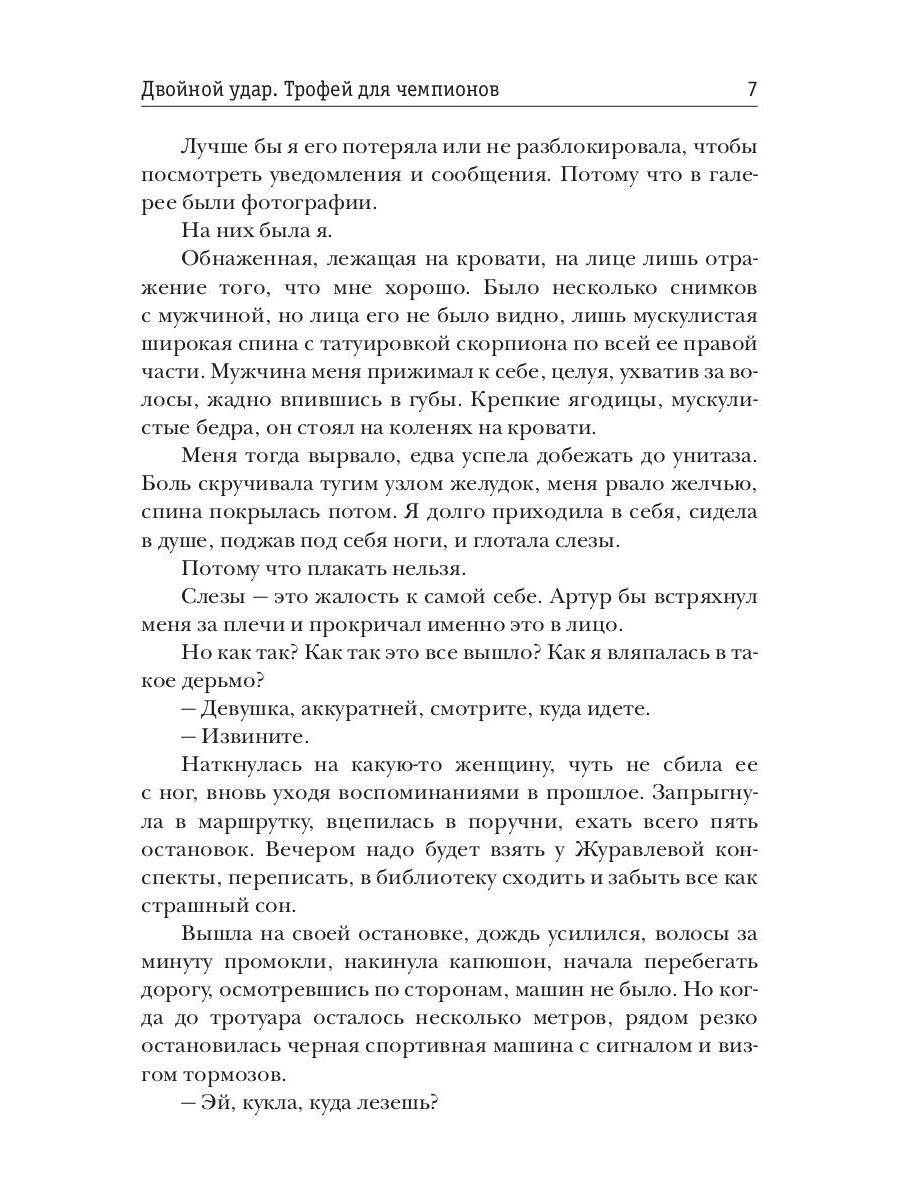 Их было двое… но я мало что помню. Как я оказалась в том гостиничном номере? Что было ночью и… кто был со мной? Но их было двое. Я бы никогда такого не допустила, не дала бы добровольно к себе прикоснуться. Но как только я успокоилась, начала приходить в себя, ОНИ снова появились. Наглые, уверенные, сильные, с издевками и шутками. Будущие чемпионы по боксу. И они решили, что я их трофей. Но я так просто не позволю сделать из себя приз и накажу их за ту ночь.| Издательство | Т8 RUGRAM |