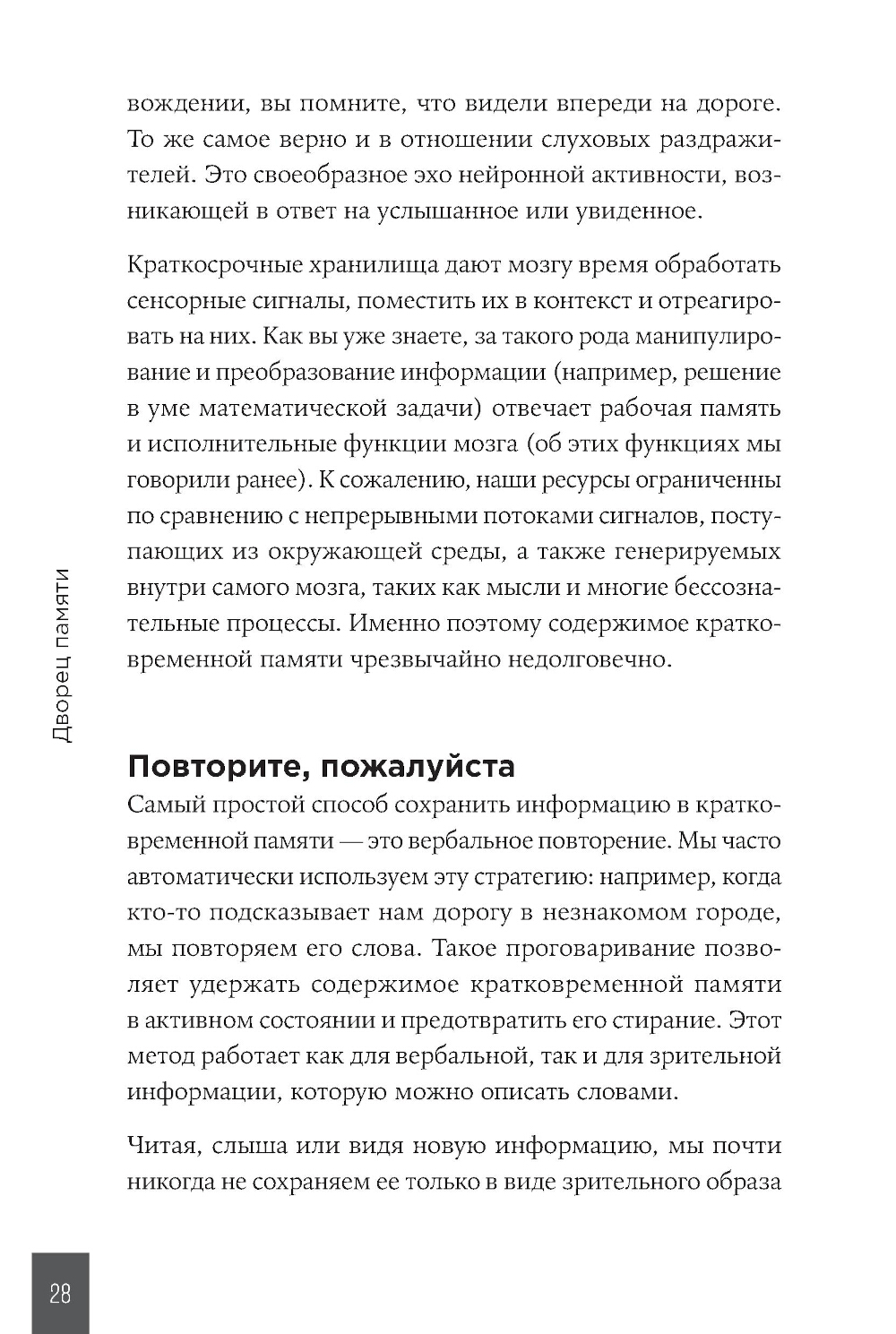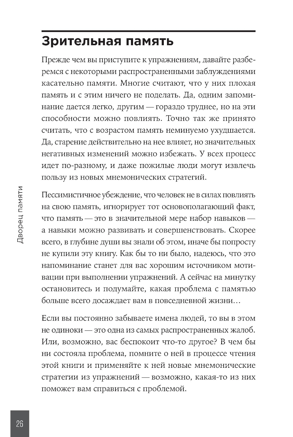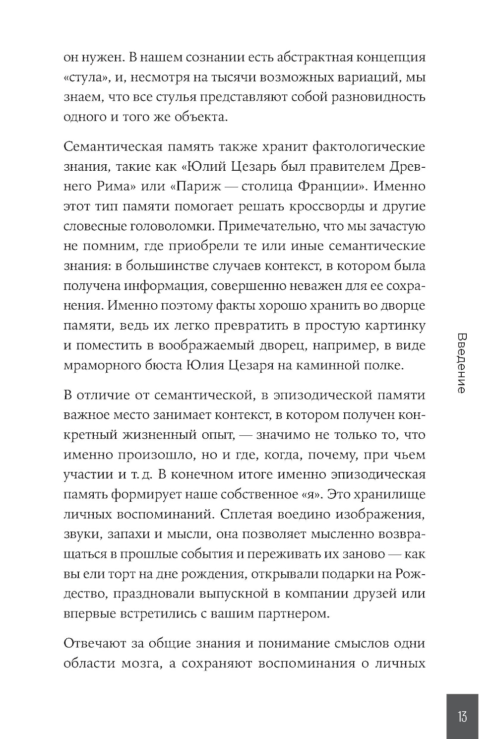 Представьте, что память - это огромный дворец, где ваши воспоминания хранятся как картины в музее. Ориентируясь в его комнатах, вы сможете в любой момент обратиться к нужному факту или образу. Этот древний мнемонический метод известен со времен Античности под названиями «дворец памяти» или «чертоги разума». Ему можно научиться, если прочесть книгу автора серии бестселлеров «Тренажер мозга» Гарета Мура, которую он написал в соавторстве с Хеленой Геллерсен. Цель собранных в ней техник и упражнений - помочь вам быстро запоминать любую информацию на короткое и длительное время. Головоломки будут постепенно усложняться, и к концу книги вы сможете построить собственный дворец памяти, чтобы вывести свою способность к запоминанию на новый уровень.| Издательство | Альпина Паблишер |