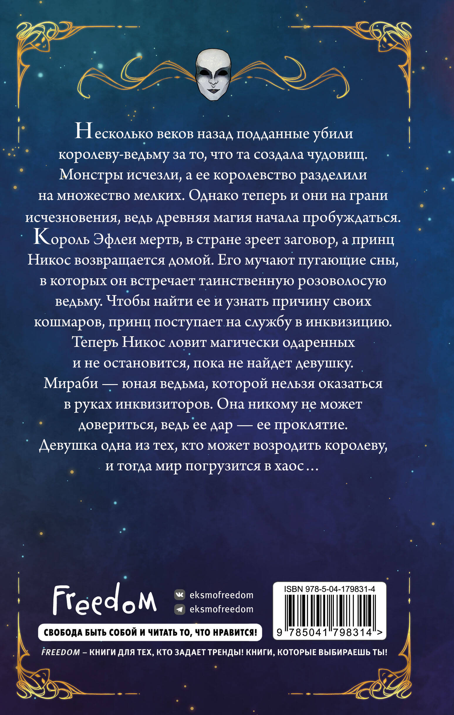 Дебютный young adult роман молодой российской писательницы Ольги Кобцевой! Вас ждут темная магия, древние проклятия, королевские интриги, чудовища и обжигающая страсть. Погрузитесь в историю притягательных инквизиторов, опасных ведьм и коварных правителей, которые объединяются, чтобы противостоять общему врагу! Для всех поклонников книги «Принц Ардена»! Придется по душе поклонникам Кассандры Клэр и Ли Бардуго! Несколько веков назад подданные убили королеву-ведьму за то, что та создала чудовищ. Монстры исчезли, а ее королевство разделили на множество мелких. Однако теперь и они на грани разрушения, ведь древняя магия начала пробуждаться. Король Эфлеи мертв, в стране зреет заговор, а принц Никос возвращается домой. Его мучают пугающие сны, в которых он встречает таинственную розововолосую ведьму. Чтобы найти ее и узнать причину своих кошмаров, принц поступает на службу в инквизицию. Теперь Никос ловит магически одаренных и не остановится, пока не найдет девушку. Мираби - юная ведьма, которой нельзя оказаться в руках инквизиторов. Она никому не может довериться, ведь ее дар - ее проклятие. Мираби одна из тех, кто может возродить королеву, и тогда мир погрузится в хаос… Чарующая обложка в исполнении Karma Virtanen с главной героиней, а также персонажи на форзаце, карта мира от Глафиры Хвостиковой и невероятное внутреннее оформление, созданы специально для книги!| Издательство | ООО "Издательство "Эксмо" |
