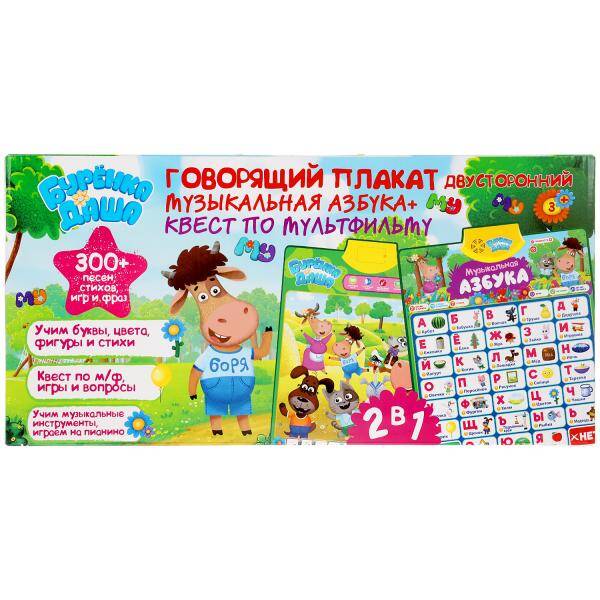 Аннотация: Двусторонний плакат Бурёнка Даша музыкальная азбука.300 песен,стихов,игр.кор.бат. Умка в кор.48шт