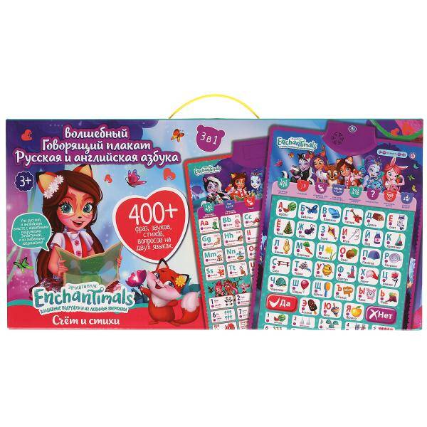 Двусторонний плакат ЭНЧЕНТИМАЛС 3в1.рус.и англ.азбука.400стихов,звуков.кор.бат. Умка в кор.48шт