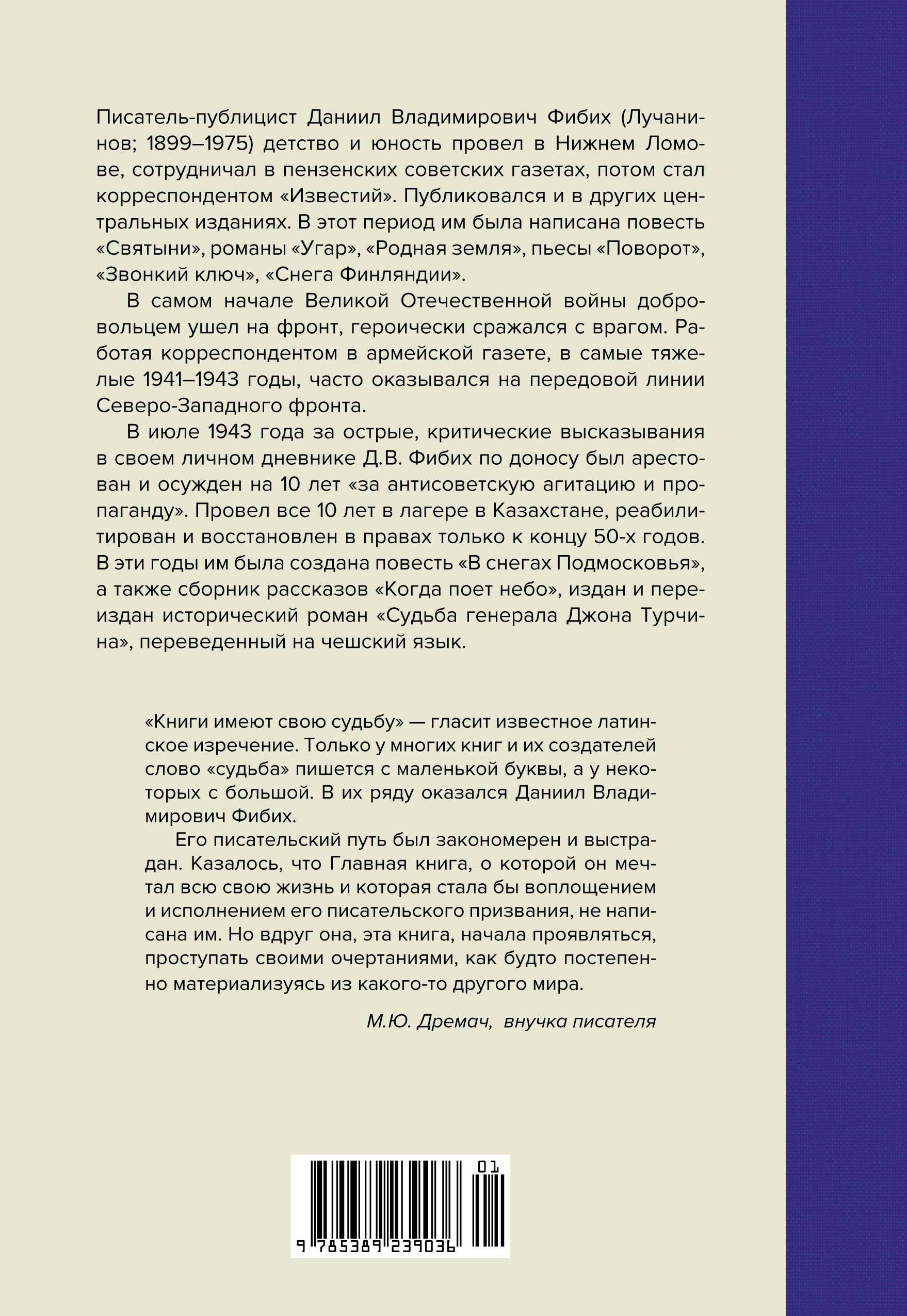 В книге собраны поразительные документы - юношеские дневники, описывающие события 1915-1917 гг. в Пензе сам факт сохранности которых удивителен и дневники фронтовые, чудом уцелевшие, а еще воспоминания о тяжелейшем испытании, которое пришлось на долю искреннего, честного, принципиального и очень красивого человека - отбывании десятилетнего срока в ГУЛАГе. Талантливый писатель Даниил Фибих создал уникальную картину эпохи глазами очевидца, которому было суждено жить в самые сложные, переломные и трагические годы истории нашей страны. С воодушевлением принявший революцию, работавший корреспондентом "Известий", автор рассказов, очерков и повестей, он добровольцем ушел на фронт, где был корреспондентом на передовой линии Западного и Северо-Западного фронта. В июне 1943 году был арестован по доносу сослуживца и осужден на срок 10 лет, который полностью отбыл. Не сломался, добился реабилитации и до конца жизни продолжал трудиться. С гимназических лет он мечтал не просто стать писателем, а создать нечто такое, что осталось бы после него. "Хочется написать такую книгу, которая бы пережила меня, явилась бы итогом целой жизни". Эта книга перед вами.| Издательство | Азбука-Аттикус Издат.группа ООО |