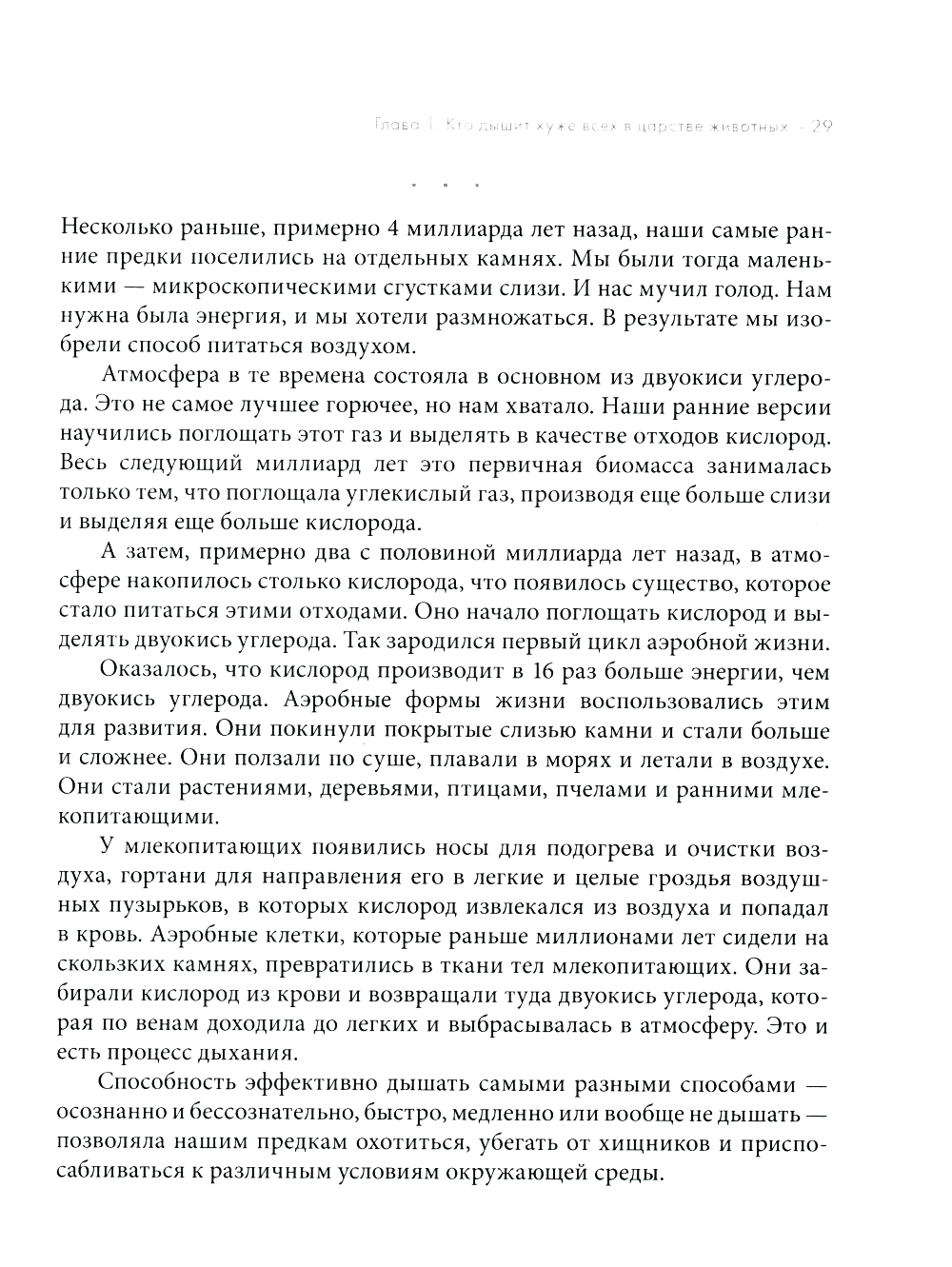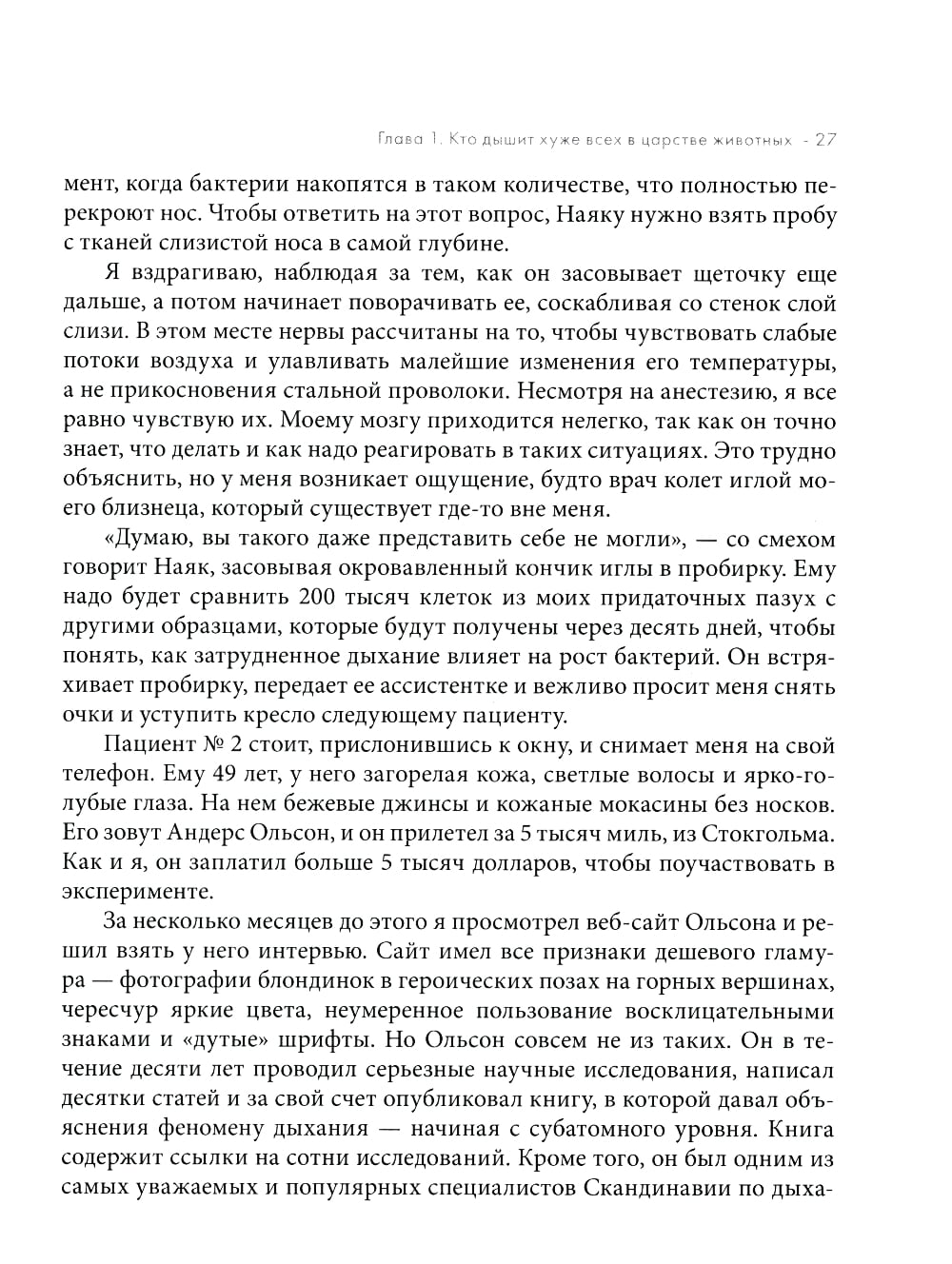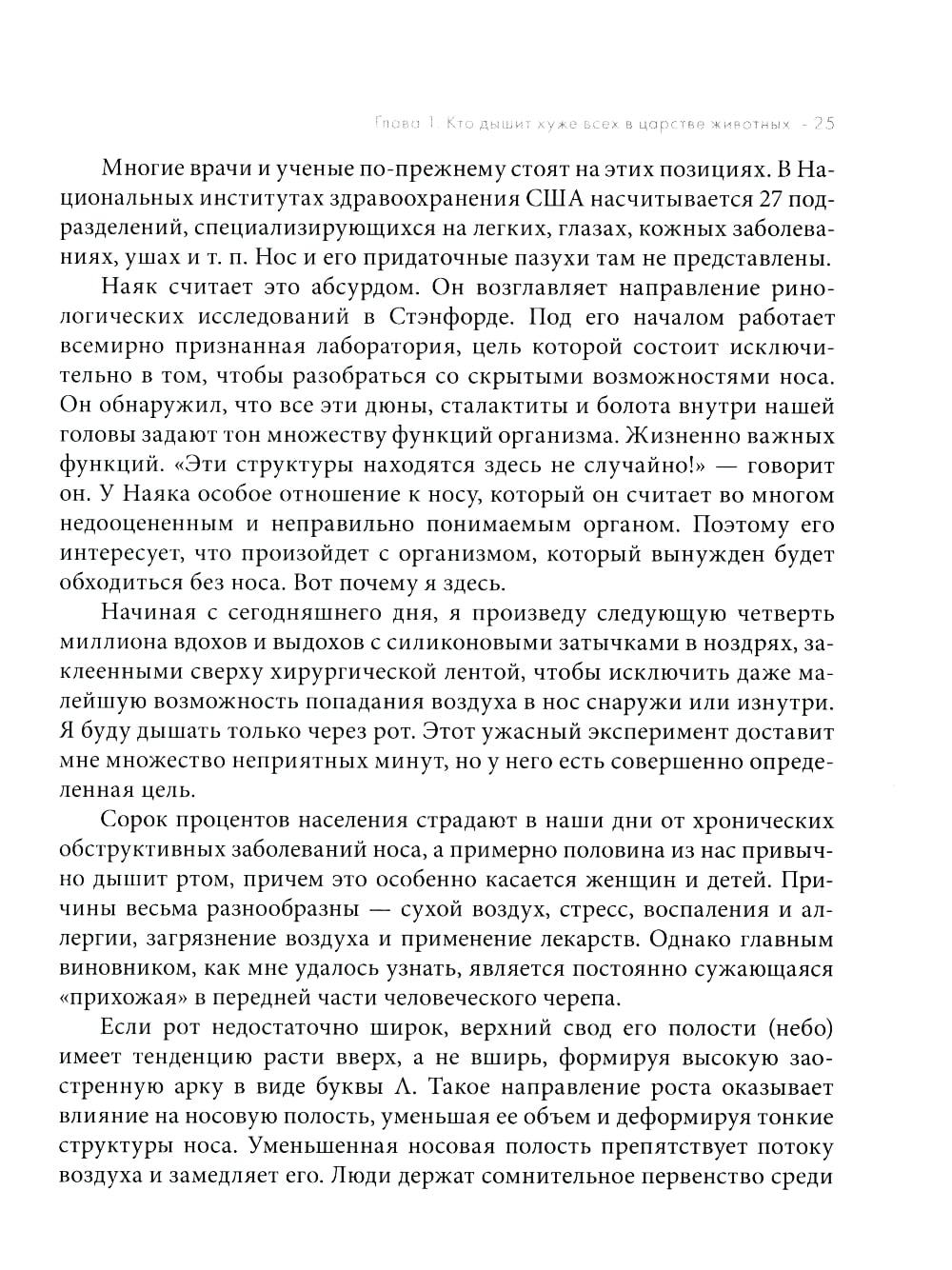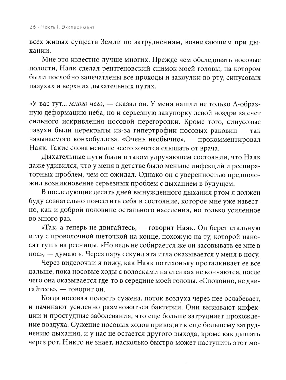 Эта книга об искусстве дыхания, основанном на современных научных исследованиях и древних практиках, и о том, как дыхание влияет на здоровье человека. Автор - журналист и исследователь - рассказывает об экспериментах над собственным дыханием и о многочисленных практиках, которые он испробовал. Кроме того, книга затрагивает вопросы эволюции, истории медицины, физиологии. Джеймс Нестор приводит описание ряда методов дыхания с детальными инструкциями, которые позволят, в частности, улучшить функции легких, снизить частоту пульса, артериальное давление и уровень стресса, а также сохранять спокойствие и сосредоточенность в напряженных ситуациях.| Издательство | Попурри |