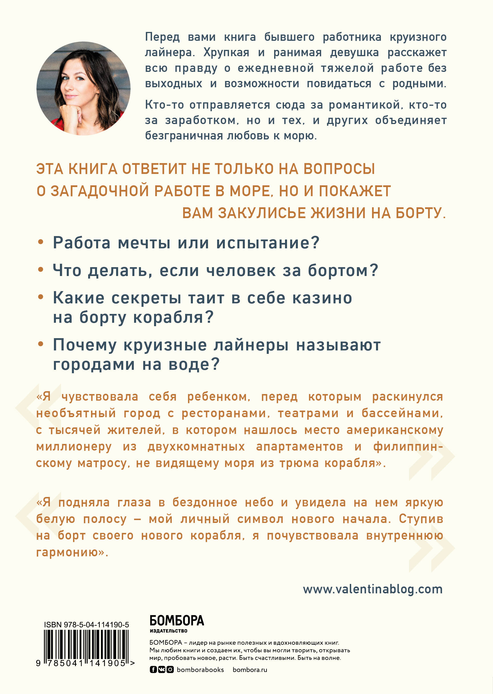 Перед вами книга бывшего работника круизного лайнера. Хрупкая и ранимая девушка расскажет всю правду об ежедневной тяжелой работе без выходных и возможности повидаться с родными. Кто-то отправляется сюда за романтикой, кто-то за заработком, но неизменно только одно - любовь к морю.