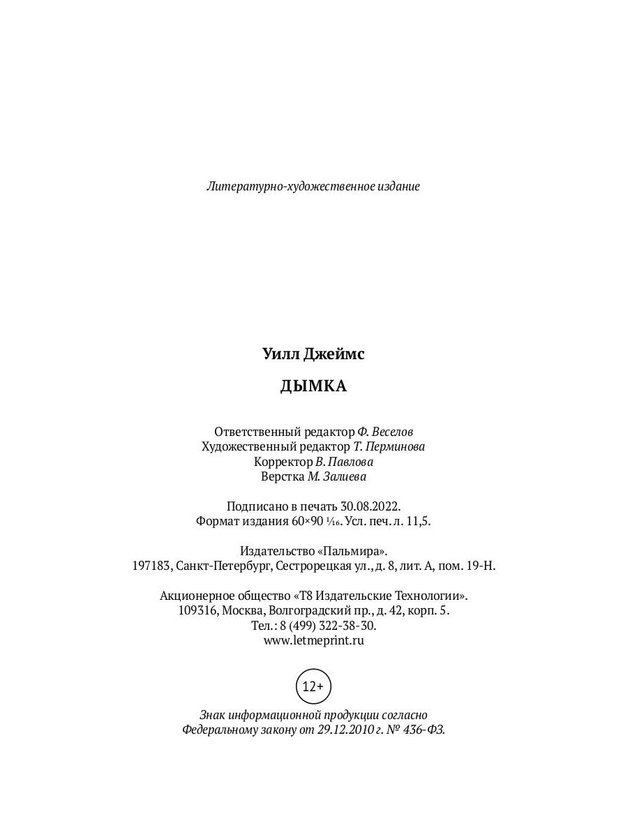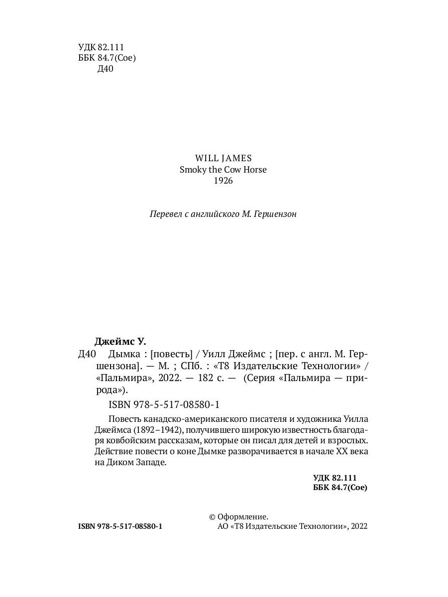Уилл Джеймс (1892-1942) - канадский писатель и художник, получивший широкую известность благодаря «ковбойским» рассказам, которые он писал для детей и взрослых. Повесть «Дымка» (1926) давно стала классикой жанра и легла в основу одноименного голливудского фильма. Действие повести разворачивается в начале XX века на Диком Западе.