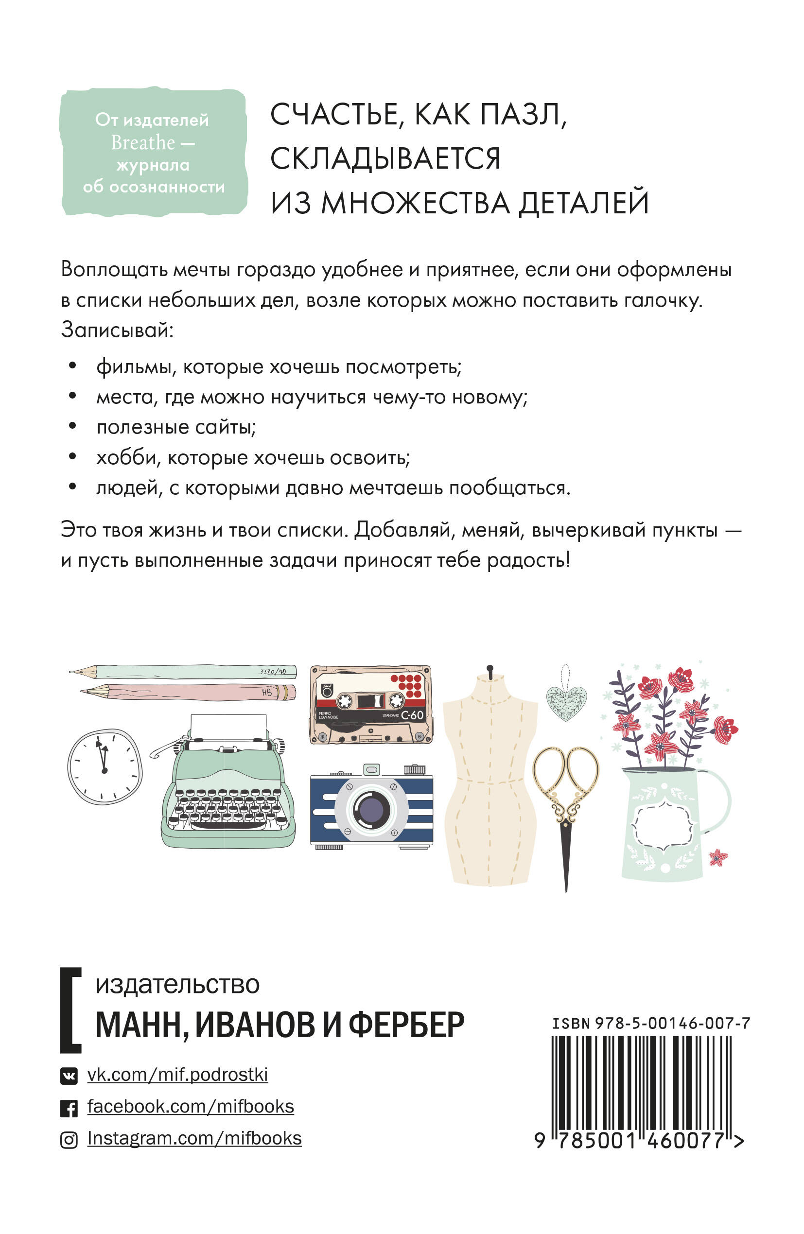 Творческий блокнот поможет тебе составить списки любимых занятий, планов будущих путешествий и непрочитанных книг. Воплощать мечты будет гораздо удобнее и приятнее. Пусть выполненные задачи приносят тебе радость!| Издательство | МАНН, ИВАНОВ И ФЕРБЕР ООО |