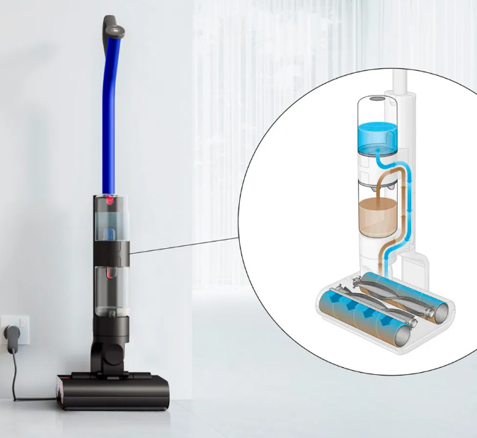 Цикл самоочистки: Оснащен специальным режимом очистки и роликами из микрофибры с высокой впитываемостью для удаления стойких пятен на кухне и в ванной комнате. Цикл самоочистки обеспечивает гигиеничность работы и подготавливает систему к следующему сеансу очистки.