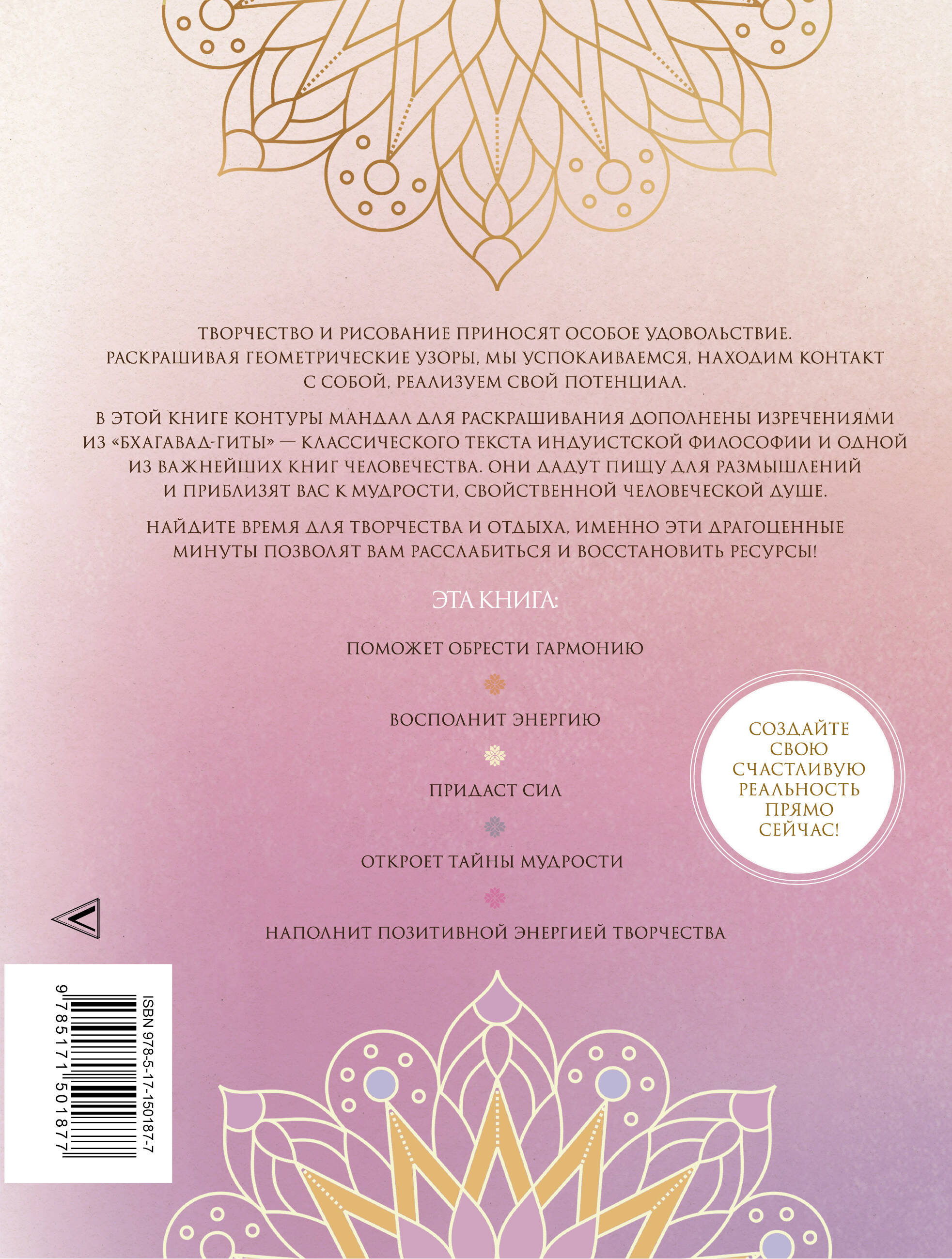 Творчество и рисование приносят особое удовольствие. Раскрашивая геометрические узоры, мы успокаиваемся, находим контакт с собой, реализуем свой потенциал. В книге "Дзен-мандалы для снятия стресса и успокоения сердца" контуры мандал для раскрашивания дополнены изречениями из "Бхагавад-гиты" - классического текста индуистской философии и одной из важнейших книг человечества. Они дадут пищу для размышлений и приблизят вас к мудрости, свойственной человеческой душе. Найдите время для творчества и отдыха, именно эти драгоценные минуты позволят вам расслабиться и восстановить ресурсы! Эта книга: • поможет обрести гармонию; • восполнит энергию; • придаст сил; • откроет тайны мудрости; • наполнит позитивной энергией творчества.| Издательство | ИЗДАТЕЛЬСТВО "АСТ" |
