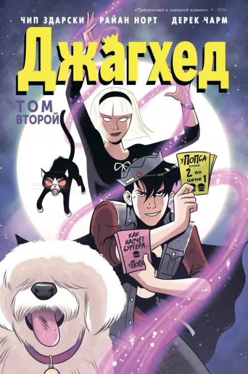 Если вкратце: Джагхед Джонс вернулся, вернулась и Сабрина, юная ведьма! О, а мы уже упоминали девушку-бургер? Ведь она есть в книге. Популярные герои! Злобные чудища! Магия! Антропоморфный бургер женского пола! Чего ещё можно желать от сборника одного из лучших перезапусков за долгое время?! Во втором томе Джагхеда есть всё! Мы уже говорили про девушку-бургер?