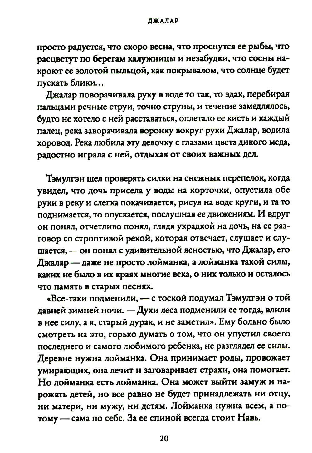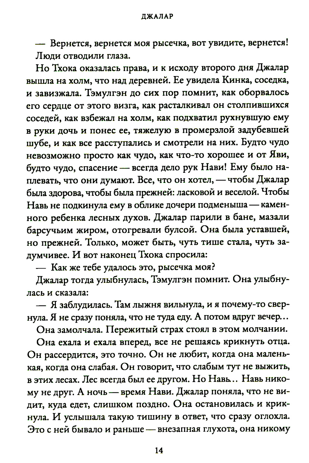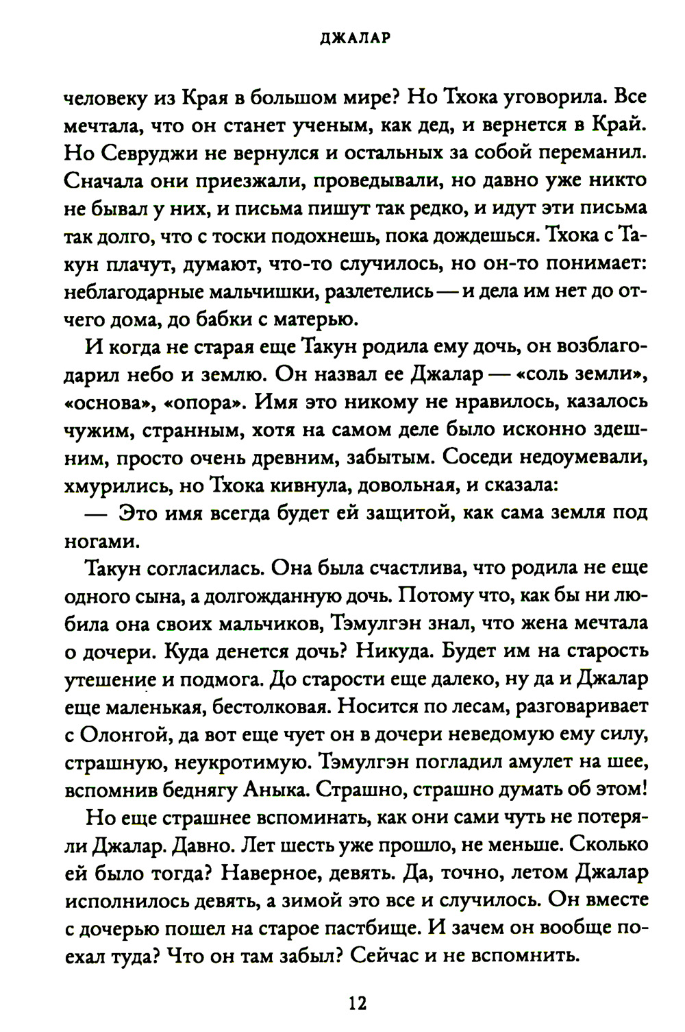 Джалар -дочьТэмулгэна, лучшего охотника Края, и внучкаТхоки, которую все уважают и слушают, будто она лойманка. Джалар - первая красавица, спасенная оленихами из цепких лап Нави. Девочка, которая может говорить с рекой. На земле, где живет Джалар, все подчиняется строгой логике: за временем Лося наступает время Утки, за Йолруном - Жарминах, и так круг за кругом. Но четкий ход круга нарушается на празднике весны. Словно кто-то нашептал дорогу самому злу, и теперь оно - здесь, в их спокойном, уверенном мире. У зла есть и глашатаи - странные люди, которые требуют выдать пряху и начинают хозяйничать в деревне. Почему каждый слышит их слова по-своему и почему от услышанного поднимается ненависть в мирных детях Рыси? Почему Джалар - угроза для них, почему вынуждена теперь она бежать из дома, спасаясь? И что за книга прячется на самом дне сундука старой Тхоки? «Джалар» - шестая повесть фэнтези-цикла Тамары Михсевой - соберет всех прях вместе. В «Семи пряхах» мастерство писательницы раскрывается по-ноному, а сказки обретают особую глубину и притчевость. С ними можно знакомиться в любом порядке, одну за одной узнавая истории девочек, которые должны сделать свой выбор - разрушать или хранить миры.| Издательство | Абрикобукс |