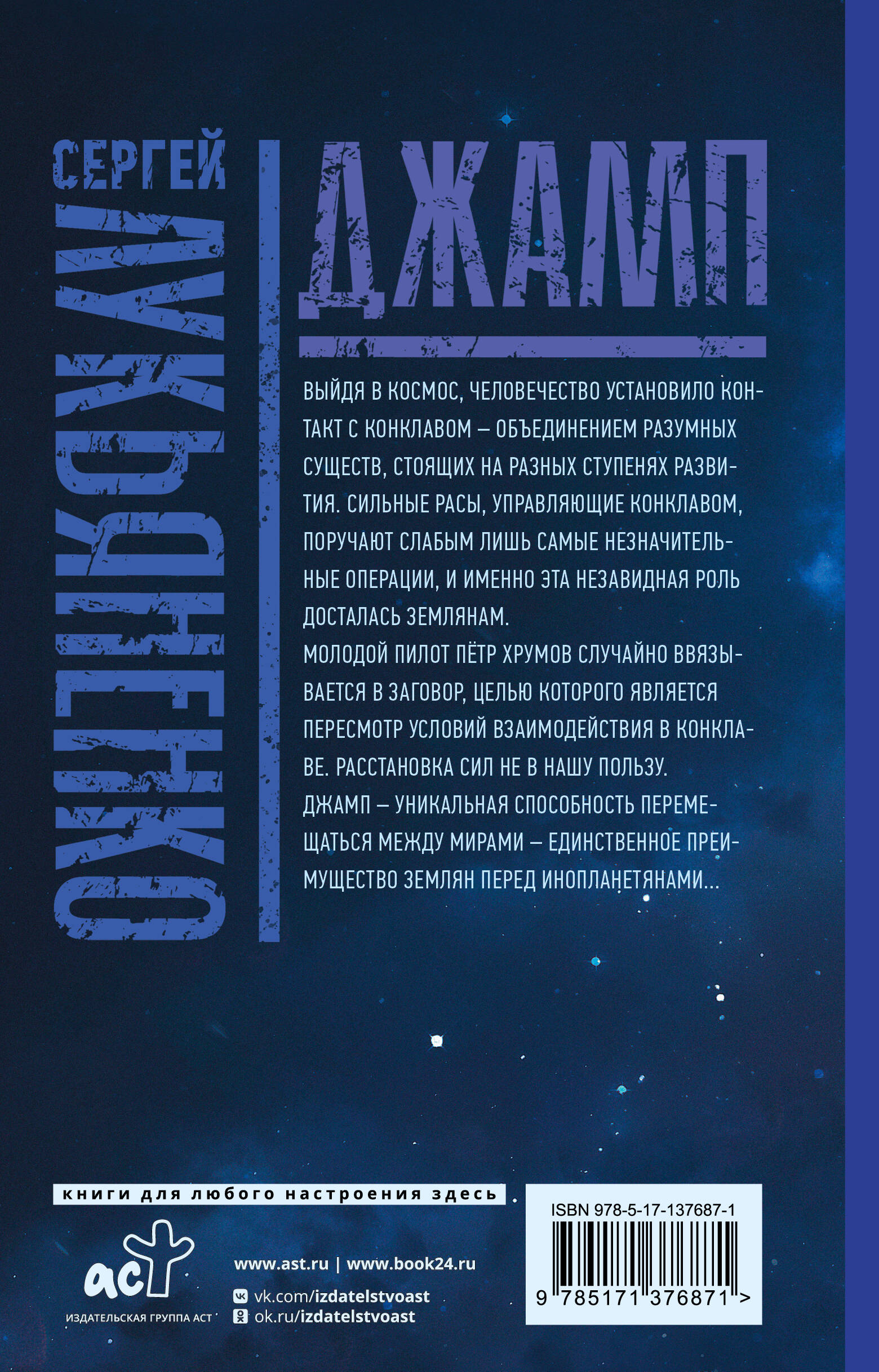 Выйдя в космос, человечество установило контакт с Конклавом - объединением разумных существ, стоящих на разных ступенях развития. Сильные расы, управляющие Конклавом, поручают Слабым лишь самые незначительные операции, и именно эта незавидная роль досталась землянам. Молодой пилот Пётр Хрумов случайно ввязывается в заговор, целью которого является пересмотр условий взаимодействия в Конклаве. Расстановка сил не в нашу пользу. Джамп - уникальная способность перемещаться между мирами - единственное преимущество землян перед инопланетянами…| Издательство | Издательство "АСТ" |