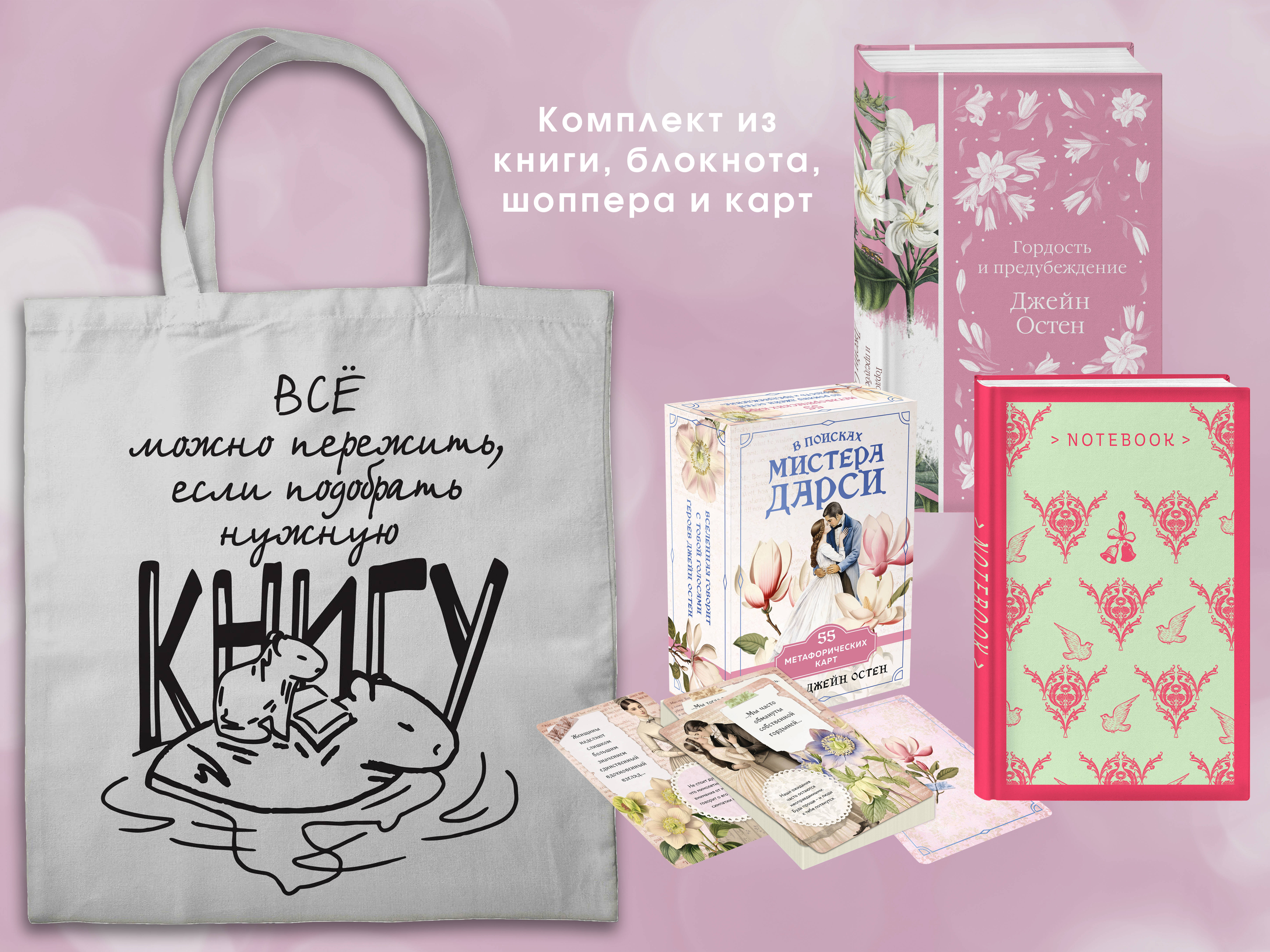 Джейн ОСТЕН и ее вселенная. (набор из книги "Гордость и предубеждение", метафорических карт "В поисках мистера Дарси" и блокнота "Грация и романтика... с шоппером)