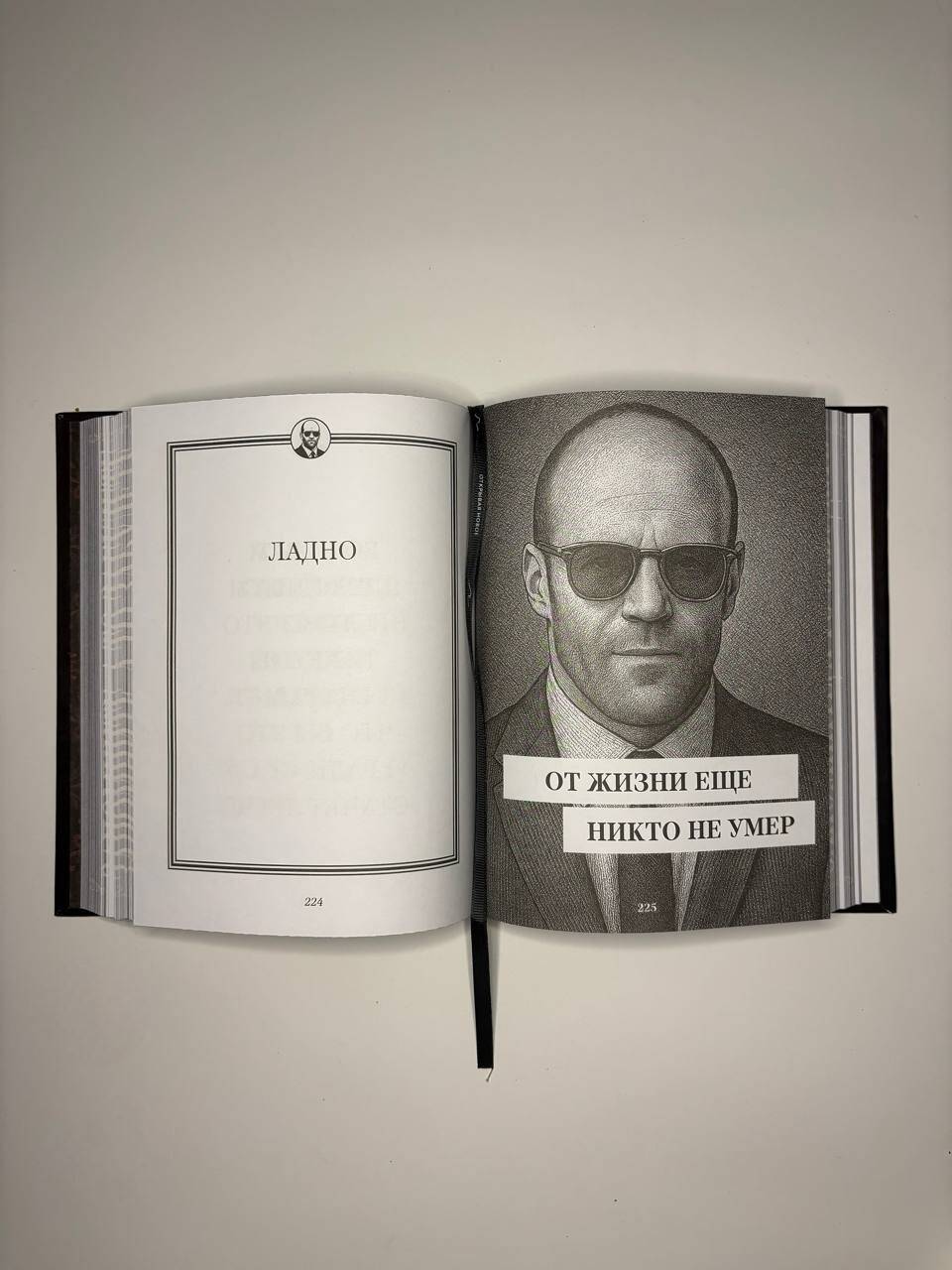 Слушай сюда. Жизнь - штука суровая. Не всегда всё идёт по маслу. И иногда просто нужна конкретная мысль, чтобы понять, как жить дальше. И тогда на помощь приходит он - главный философ современности Джейсон Стетхэм со своими цитатами (которые на самом деле никогда не произносил). Все эти пацанские мудрости, которые гуляют по Сети и бьют прямо в цель. Про то, как жить без соплей, как держать слово, как отличить настоящего мужика от нытика. Собрали все, что приписывают этому легендарному парню, который в кино не болтает лишнего, а делает нужное. Гарантируем - тут есть над чем и поржать, и задуматься. Но это не просто набор букв на бумаге. Это ПОДАРОЧНОЕ издание. Сделано как надо, без халтуры: • Обложка: Крепкая, красивая, которую приятно держать в руках и не стыдно положить на видное место. • Ляссе: Специальная закладка-ленточка. Чтобы не загибать страницы, как варвар, и всегда знать, где остановился на пути к мудрости. • Печать по обрезу: Это тебе не шутки. Это стиль. Дорого-богато, но по-нашему. Сразу видно - вещь! Идеальный подарок для любого пацана, который ценит юмор, прямоту и немного абсурдной, но такой понятной жизненной мудрости. Для друга, брата, отца, или просто для себя, если ты знаешь толк в правильных вещах.