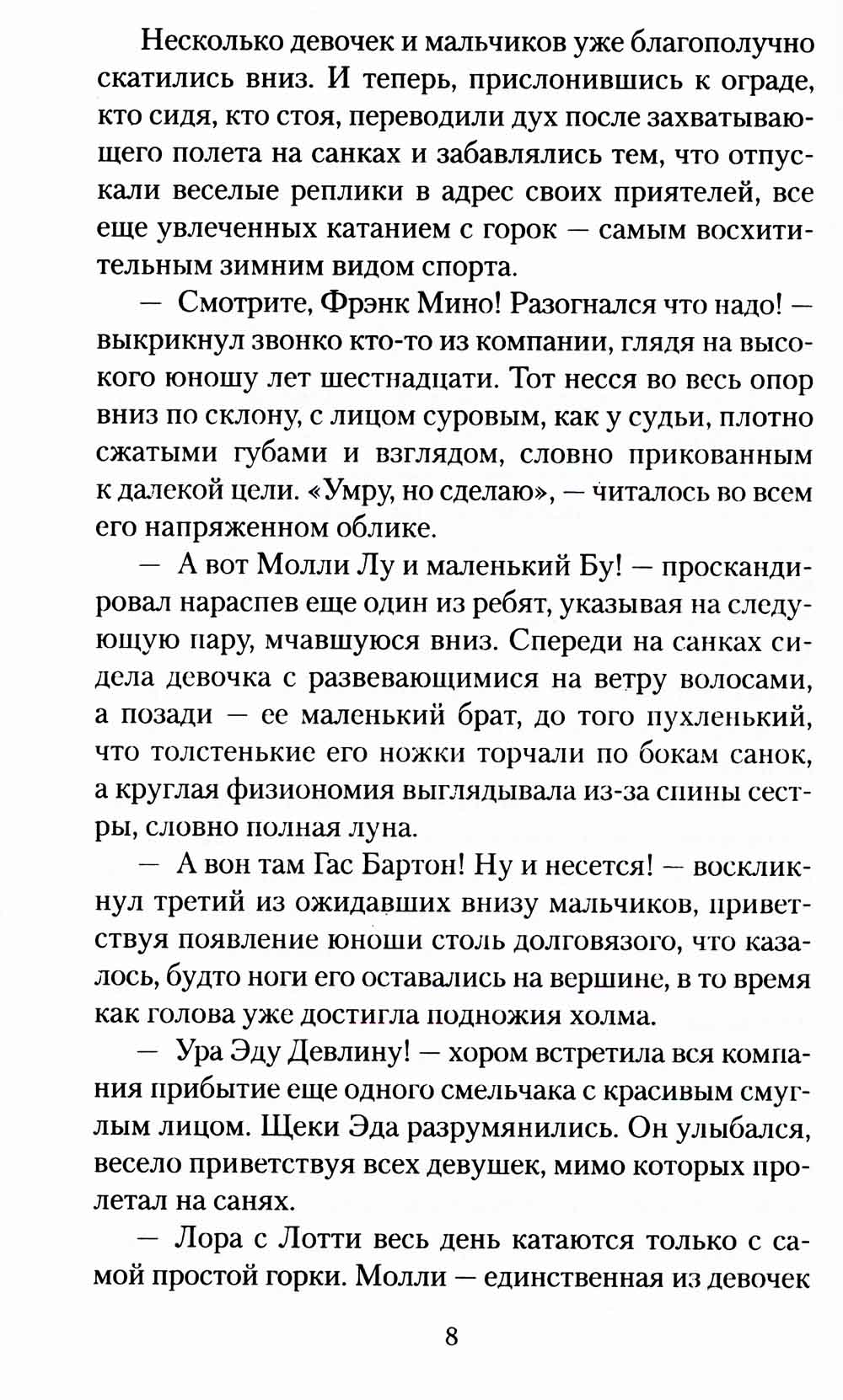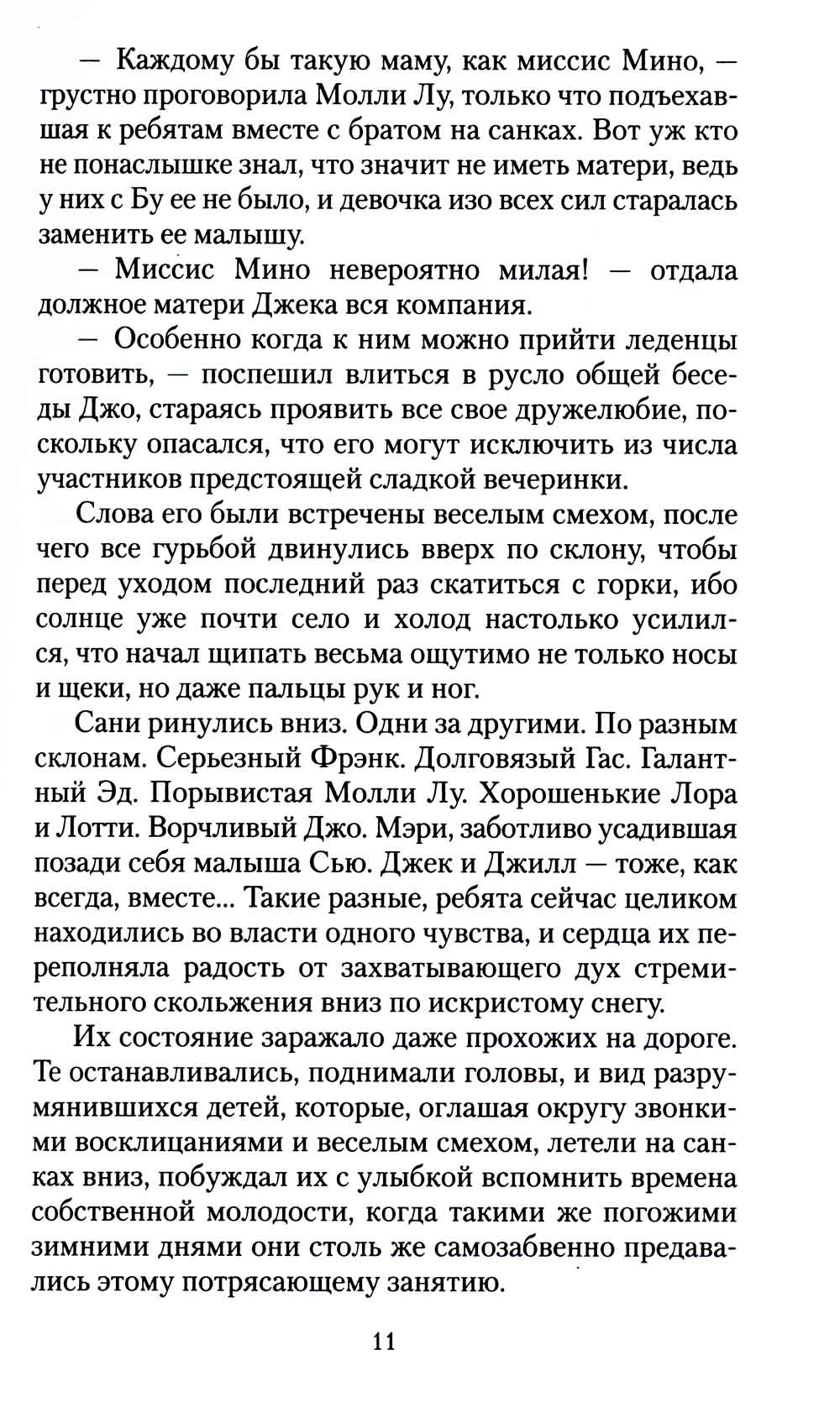 Луиза Мэй Олкотт - американская писательница, автор знаменитого романа «Маленькие женщины», который принес ей мировую славу и любовь читателей. До сих пор книга остается одним из самых значимых произведений американской литературы. В настоящее издание вошел роман Олкотт «Джек и Джилл», действие которого происходит в небольшом американском городке в середине девятнадцатого века. Джек Мино и Дженни Пэк - лучшие друзья на свете, они живут по соседству и всегда проводят время вместе. За это их прозвали Джек и Джилл, в честь неразлучных персонажей из детских стихов и сказок. В целом городе нет никого веселее их, никого, кто был бы так горазд на выдумки. Но вот однажды, одним зимним солнечным днем, Джек и Джилл рискнули скатиться на санках по самому опасному склону… Как результат - долгие месяцы постельного режима. Преодолеть тяжелые испытания героям помогут мудрые родители, верные друзья, добрые соседи и, конечно, смекалка, рождающая самые неожиданные изобретения.| Издательство | Азбука |