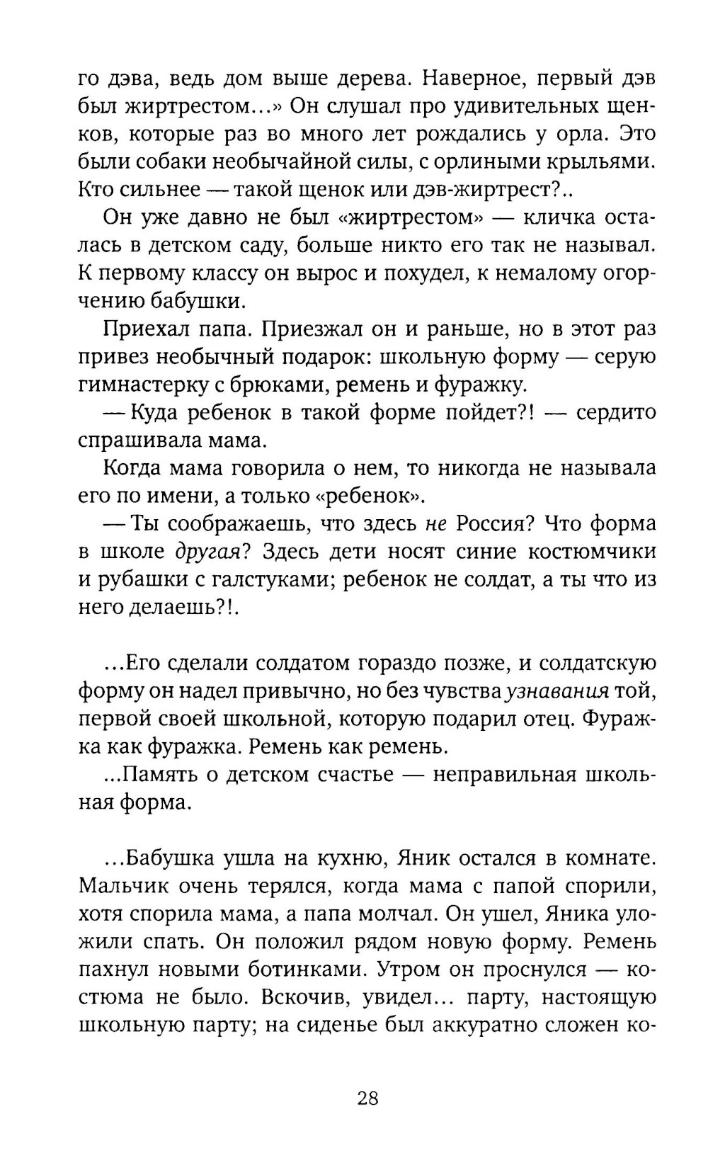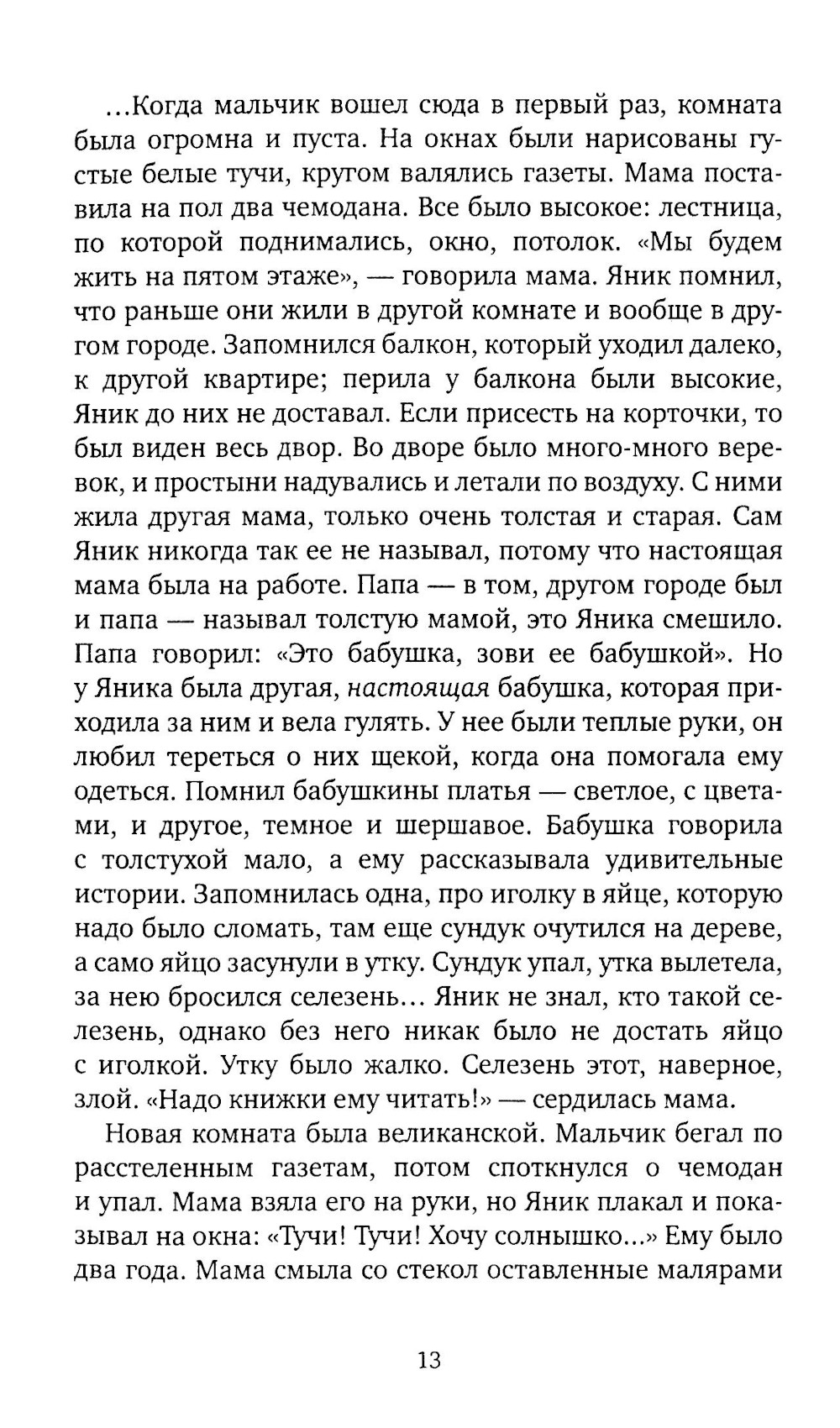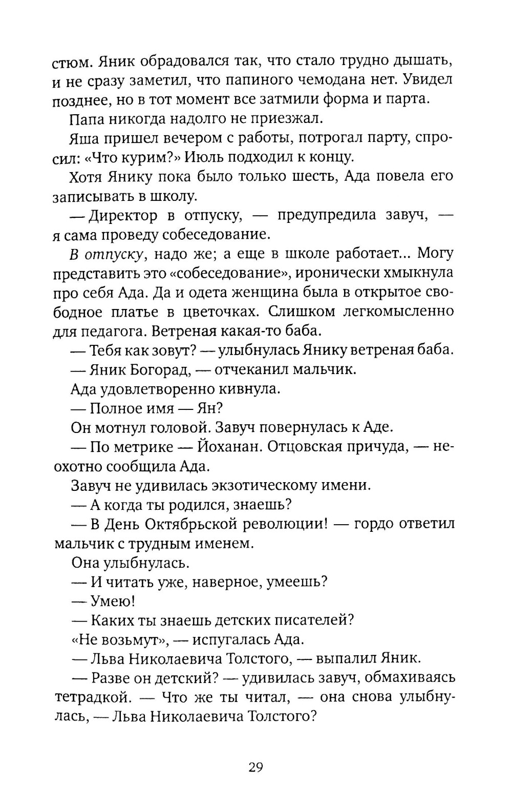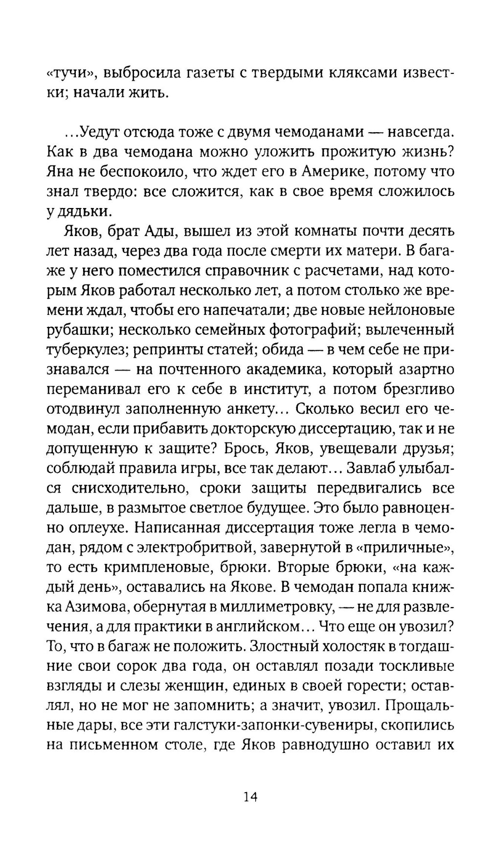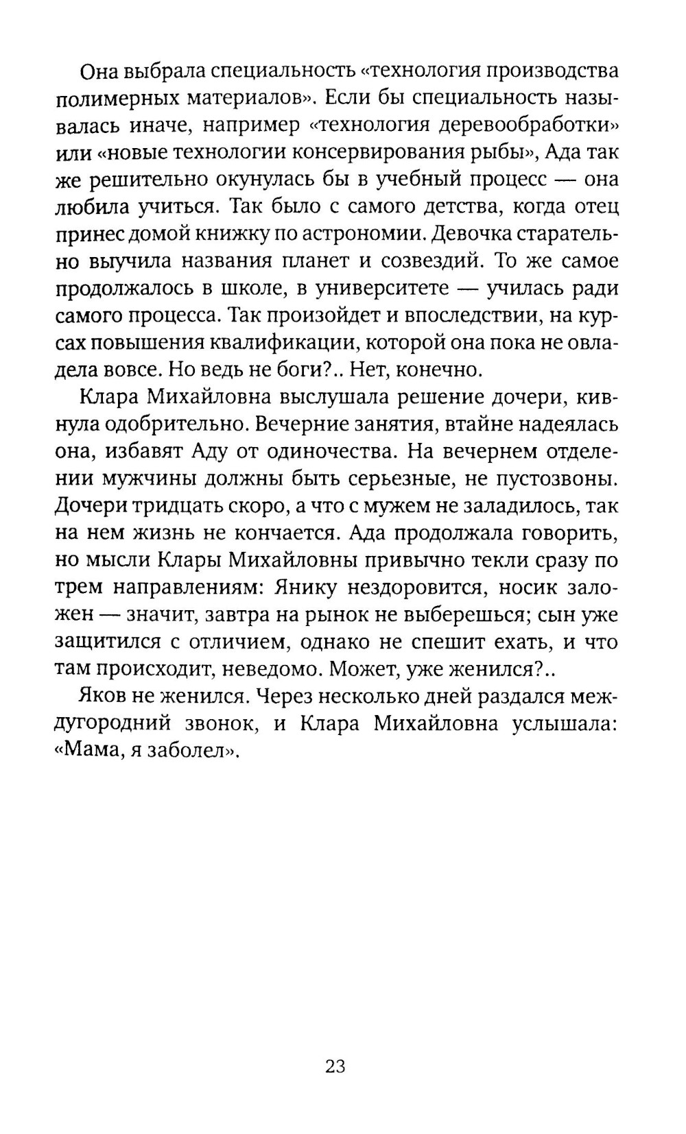Действие новой семейной саги Елены Катишонок начинается в привычном автору городе, откуда простирается в разные уголки мира. Новый Свет - новый век - и попытки героев найти своё место здесь. В семье каждый решает эту задачу, замкнутый в своём одиночестве. Один погружён в работу, другой в прошлое; эмиграция не только сплачивает, но и разобщает. Когда люди расстаются, сохраняются и бережно поддерживаются только подлинные дружбы. Ян Богорад в новой стране старается «найти себя, не потеряв себя». Он приходит в гости к новому приятелю и находит... свою судьбу. Встреча могла состояться пятнадцать лет назад, однако впереди - вся оставшаяся жизнь, счастье сегодняшнего дня. История любви «этих двоих» - и сокрушительная сила материнской любви; наши дни и прошлое; сегодняшние войны - и Вторая мировая война глазами узницы концлагеря и офицера польской Армии Крайовой. Жизненные пути героев пересекаются причудливо и неожиданно, старое поколение уходит и появляется новое. От того, удастся ли сохранить связь между ними, зависит и наша общая историческая память.| Издательство | Время |