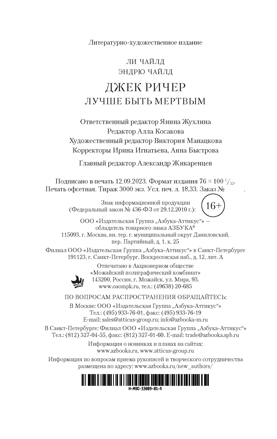 | Автор/составитель | Чайлд Ли;Чайлд Эндрю |