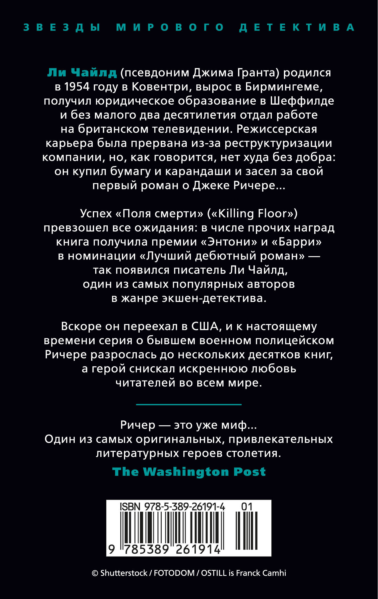 Бывший военный полицейский Джек Ричер совершенно не ищет приключений на свою голову. Они находят его сами. И на сей раз это случается при обстоятельствах настолько неординарных, что Ричер просто теряется в догадках. А как бы вы отнеслись к тому, что человек, в смерти которого вы были уверены последние десять лет, разгуливает по улицам цел и невредим? И этот человек - шантажист, предатель и жестокий убийца. Когда-то его знали под фамилией Куинн...| Издательство | Азбука-Аттикус Издат.группа ООО |
