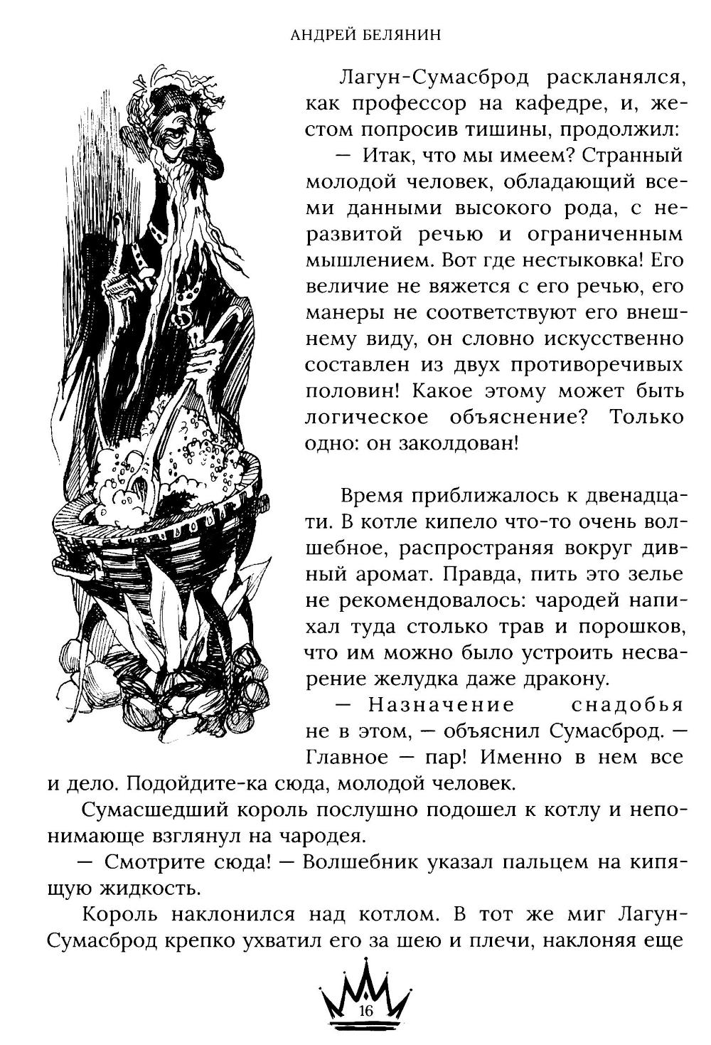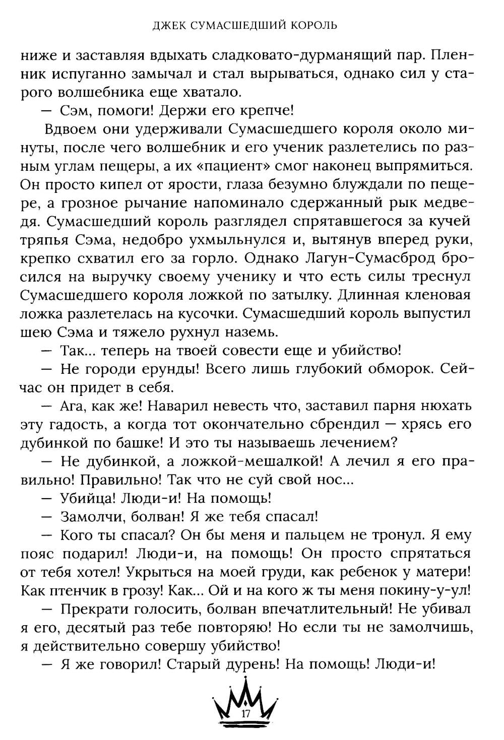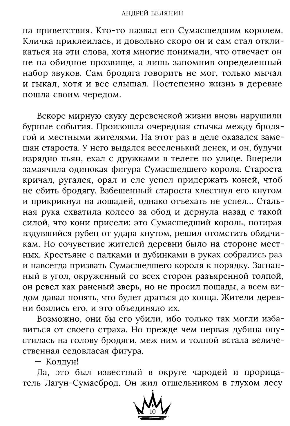 «Джек Сумасшедший король» - одна из первых книг знаменитого писателя Андрея Белянина, настоящего мастера юмористического фэнтези, лауреата премии «Аэлита» и других престижных наград. Первое издание «Джека» состоялось в далеком 1996 году. С тех пор книга выдержала огромное количество допечаток и переизданий, а суммарный тираж приближается к 300 000 экземпляров. На деревенской дороге из ниоткуда появляется странный бродяга с замашками особы голубых кровей, потерявший память и дар речи. Недолго думая, жители деревни дают ему шутливое прозвище «Сумасшедший король». Что сумасшедший - оно и понятно, а вдруг и правда король? К всеобщему и своему собственному удивлению бродяга находит в деревне верных друзей в лице колдуна и его ученика. Но теперь ему предстоит еще более сложная задача: найти самого себя.| Издательство | Alpaca |