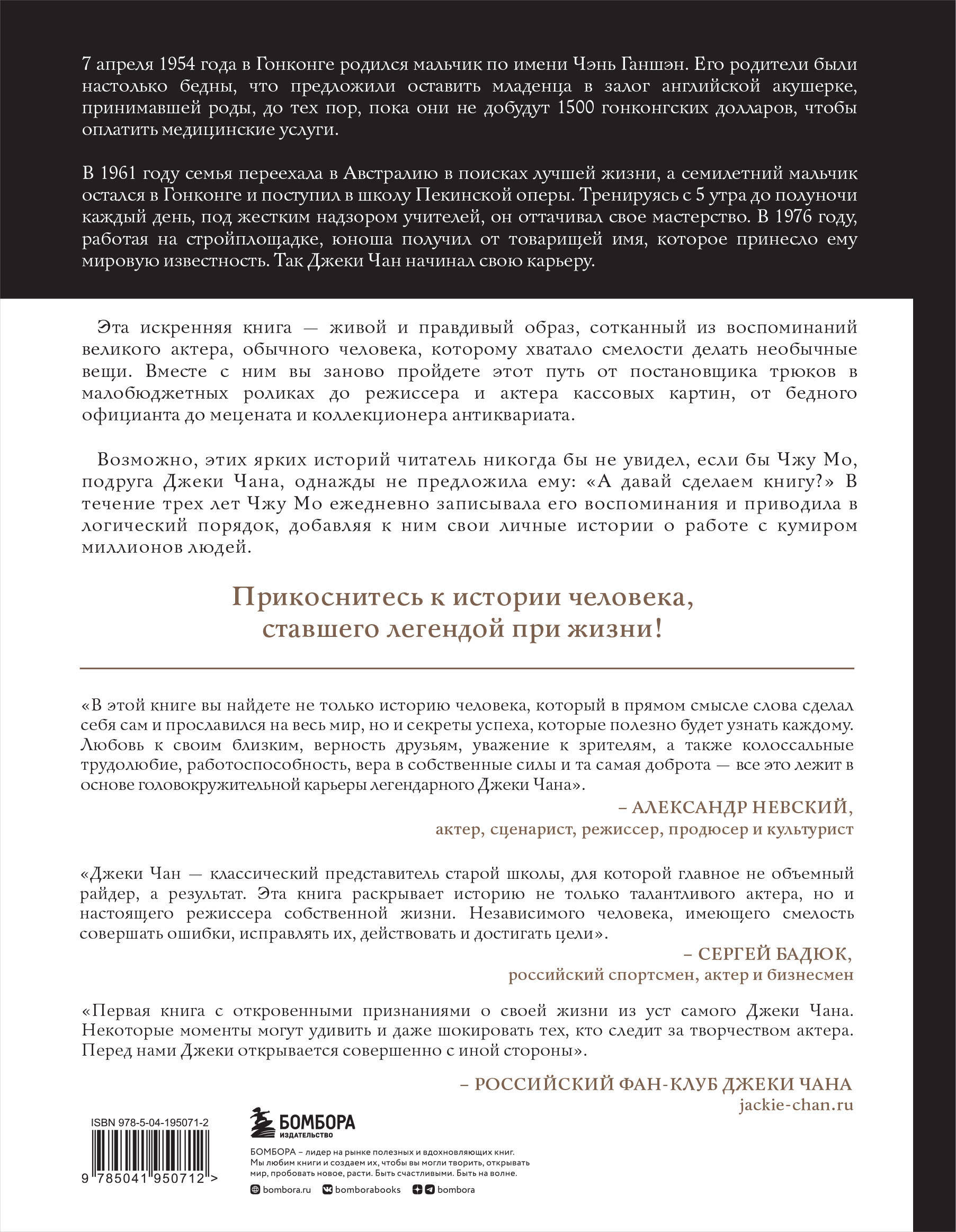 7 апреля 1954 года в Гонконге родился мальчик по имени Чэнь Ганшэн. Его родители были настолько бедны, что предложили оставить младенца в залог английской акушерке, принимавшей роды, до тех пор, пока они не добудут 1500 гонконгских долларов, чтобы оплатить медицинские услуги. В 1961 году семья переехала в Австралию в поисках лучшей жизни, а семилетний мальчик остался в Гонконге и поступил в школу Пекинской оперы. Тренируясь с 5 утра до полуночи каждый день, под жестким надзором учителей, он оттачивал свое мастерство. В 1976 году, работая на стройплощадке, юноша получил от товарищей имя, которое принесло ему мировую известность. Так Джеки Чан начинал свою карьеру. Эта искренняя книга - живой и правдивый образ, сотканный из воспоминаний великого актера, обычного человека, которому хватало смелости делать необычные вещи. Вместе с ним вы заново пройдете этот путь - от постановщика трюков малобюджетных роликов до режиссера и актера кассовых картин, от бедного официанта до мецената и коллекционера антиквариата. Возможно, этих ярких историй читатель никогда бы не увидел, если бы Чжу Мо, подруга Джеки Чана, однажды не предложила ему: «А давай сделаем книгу?» В течение трех лет Чжу Мо ежедневно записывала его воспоминания и приводила в логический порядок, добавляя к ним свои личные истории о работе с кумиром миллионов людей. Прикоснитесь к истории человека, ставшего легендой при жизни!| Издательство | ООО "Издательство "Эксмо" |