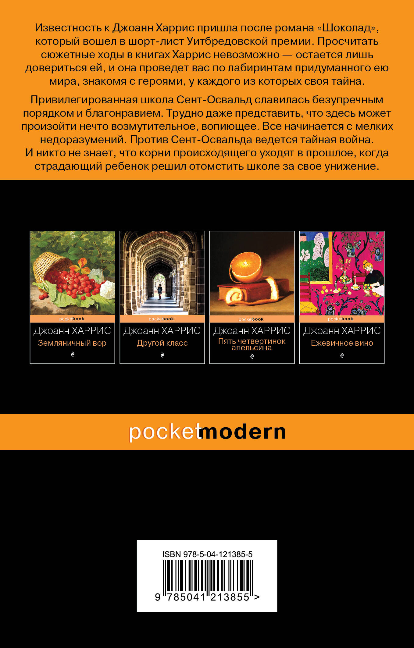 Известность к Джоанн Харрис пришла после издания романа «Шоколад», который вошел в шорт-лист престижной Уитбредовской премии. Экранизация «Шоколада» с Жюльетт Бинош и Джоном Деппом сделала писательницу знаменитой. Сегодня ее книги любимы миллионами читателей во всем мире. Ее проза поэтична, сюжеты необычны. Просчитать сюжетные ходы в книгах Харрис невозможно - остается лишь довериться ей, и она проведет вас по лабиринтам придуманного ею мира, знакомя с героями, у каждого из которых своя тайна, своя «изюминка». Привилегированная школа Сент-Освальд всегда славилась безупречным порядком и исключительным благонравием. Трудно даже представить, что здесь может произойти нечто дерзкое, возмутительное, вопиющее. Однако это происходит. Начинается с каких-то мелких недоразумений, но постепенно события нарастают, как снежный ком. Против Сент-Освальда ведется тайная война. И никто не знает, что корни происходящего уходят в прошлое, когда страдающий ребенок твердо решил отомстить школе за свое унижение.| Издательство | ООО "Издательство "Эксмо" |