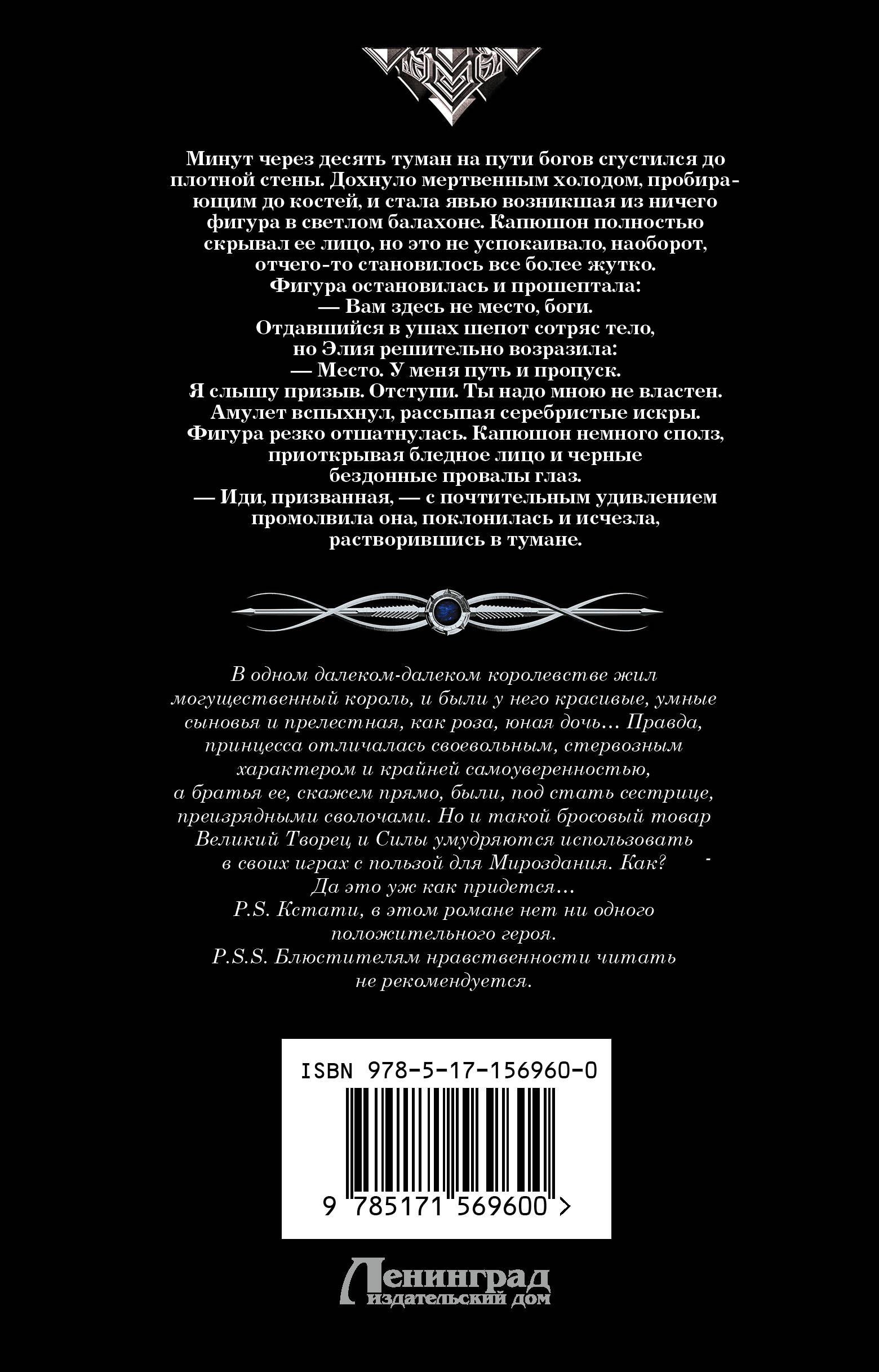 В одном далеком-далеком королевстве жил могуществен- ный король, и были у него красивые, умные сыновья и прелест- ная, как роза, юная дочь… Правда, принцесса отличалась свое- вольным, стервозным характером и крайней самоуверенностью, а братья ее, скажем прямо, были, под стать сестрице, преизряд- ными сволочами. Но и такой бросовый товар Великий Творец и Силы умудряются использовать в своих играх с пользой для Мироздания. Как? Да это уж как придется… P.S. Кстати, в этом романе нет ни одного положительного героя. P.S.S. Блюстителям нравственности читать не рекомендуется.| Издательство | Издательство "АСТ" |