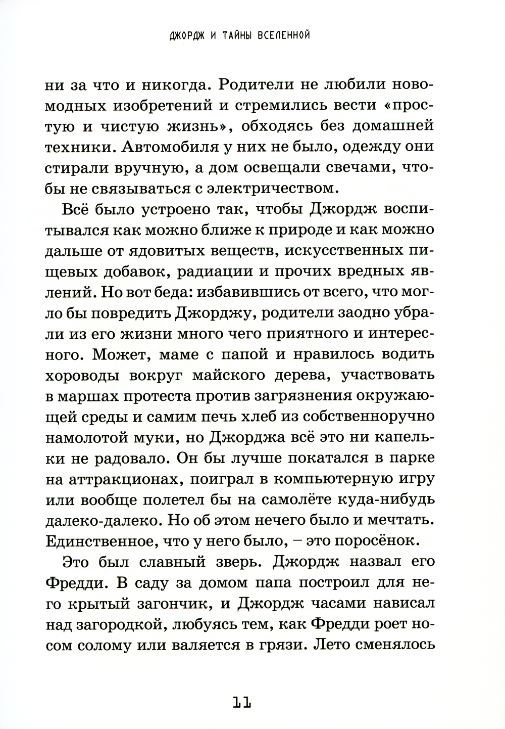 Джордж, герой книги знаменитого астрофизика Стивена Хокинга, знакомится с новыми соседями: девочкой Анни и её папой-учёным Эриком. У Эрика есть необыкновенный компьютер, способный в одно мгновение доставить Джорджа и его друзей в любую точку Вселенной. И Джордж отправляется в космическое путешествие - мимо планет, сквозь астероидный дождь, на самый край нашей Солнечной системы и за её пределы... Однако кое-кто задумал использовать гениальный компьютер в недобрых целях, и теперь Эрику с Джорджем грозит страшная опасность - чёрная дыра! Захватывающие приключения переплелись в этой книге с научными фактами о нашей Вселенной и с новейшей теорией Стивена Хокинга о чёрных дырах. В книге использованы уникальные снимки из космоса.| Издательство | Розовый жираф |