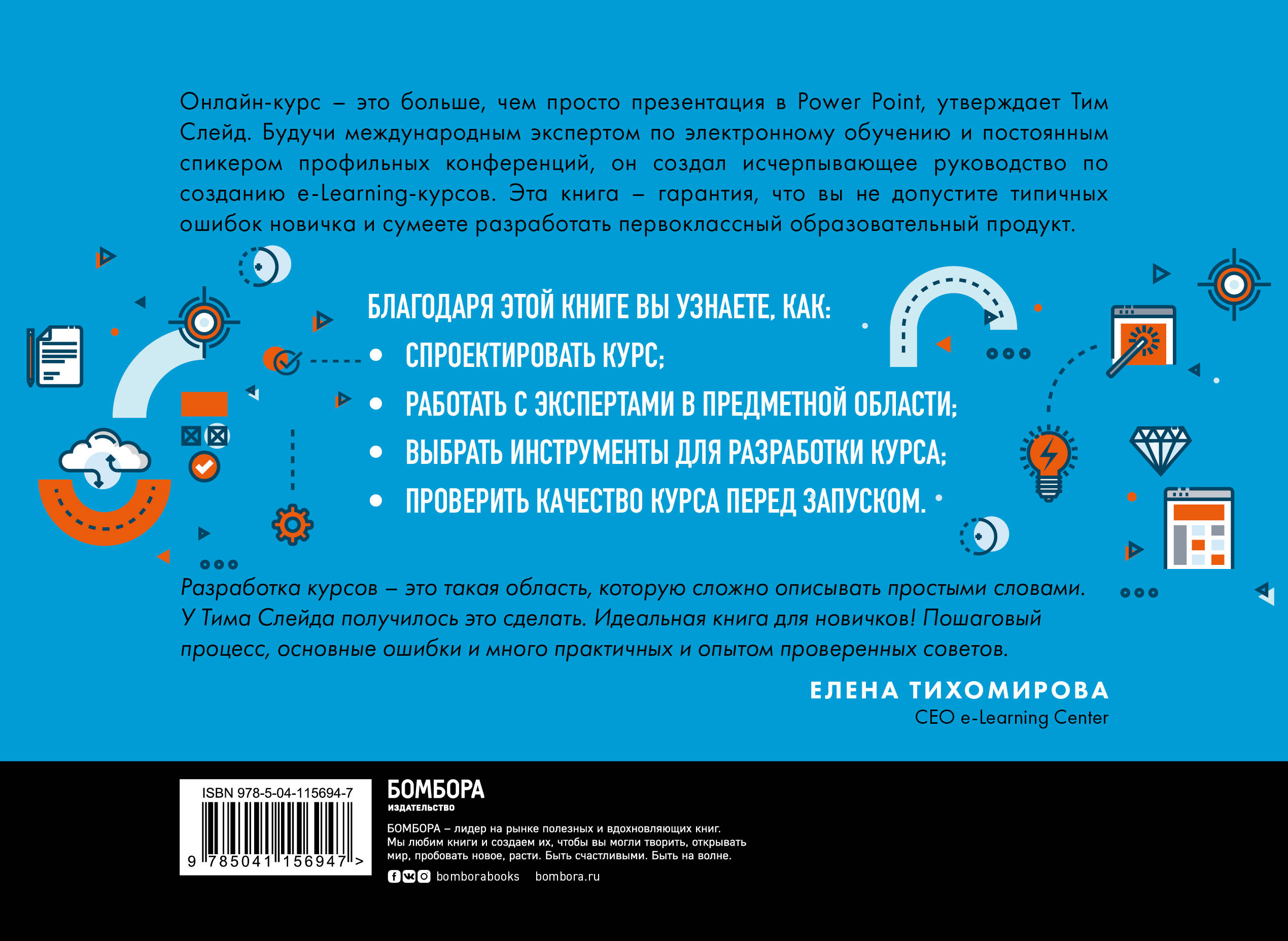 Онлайн-курс - это больше, чем просто презентация в Power Point, утверждает Тим Слейд. Будучи международным экспертом по электронному обучению и постоянным спикером профильных конференций, он создал исчерпывающее руководство по созданию e-Learning-курсов. Эта книга - гарантия, что вы не допустите типичных ошибок новичка и сумеете разработать первоклассный образовательный продукт. Благодаря этой книге вы узнаете, как: • спроектировать курс; • привлечь и заставить работать экспертов; • выбрать инструменты для разработки курса; • создать систему тестирования качества обучения.| Издательство | ООО "Издательство "Эксмо" |