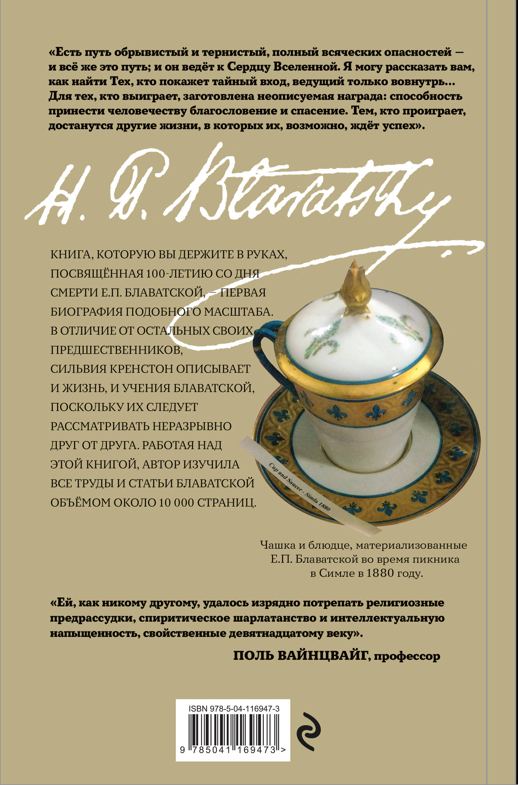 В 2021 году исполняется 190 лет со дня рождения и 130 лет со дня смерти Елены Петровны Блаватской - основательницы теософского учения, объединившего науку, религию и философию, самого яркого мистика нашей эпохи. Книга, которую вы держите в руках, - первая биография подобного масштаба. В отличие от остальных своих предшественников, Сильвия Крэнстон описывает и жизнь, и учения Блаватской, поскольку их следует рассматривать неразрывно друг от друга. Работая над этой книгой, автор изучила все труды и статьи Блаватской, объёмом около 10 000 страниц. «Женщина, которая по той или иной причине заставила весь мир - сперва крохотный мирок своего детства, а затем и весь земной шар - говорить и спорить о ней, защищать и критиковать её характер и стремления, поддерживать её дело или противостоять ему всеми силами, смерть которой вызвала такую лавину телеграмм между двумя континентами, как будто бы скончался император, - такая женщина, должно быть, и вправду была незаурядной личностью». - Газета «Сан» «Магомет, йоги и госпожа Блаватская… Здесь мы сталкиваемся с законом куда более глубинным, чем обыкновенные законы природы». - Герберт Уэллс «Буквально за пару лет Теософское общество полностью изменило оккультное мышление в Европе и Америке… став мощным фактором возрождения индуизма и буддизма». - Пол Цвейг «Ей, как никому другому, удалось изрядно потрепать религиозные предрассудки, спиритическое шарлатанство и интеллектуальную напыщенность, свойственные девятнадцатому веку. Потому вполне естественно, что злопыхатели приписывали ей все те качества, против которых она боролась почти в одиночку - с силой, грацией и дерзким юмором Гаргантюа». - Профессор Поль Вайнцвайг| Издательство | ООО "Издательство "Эксмо" |