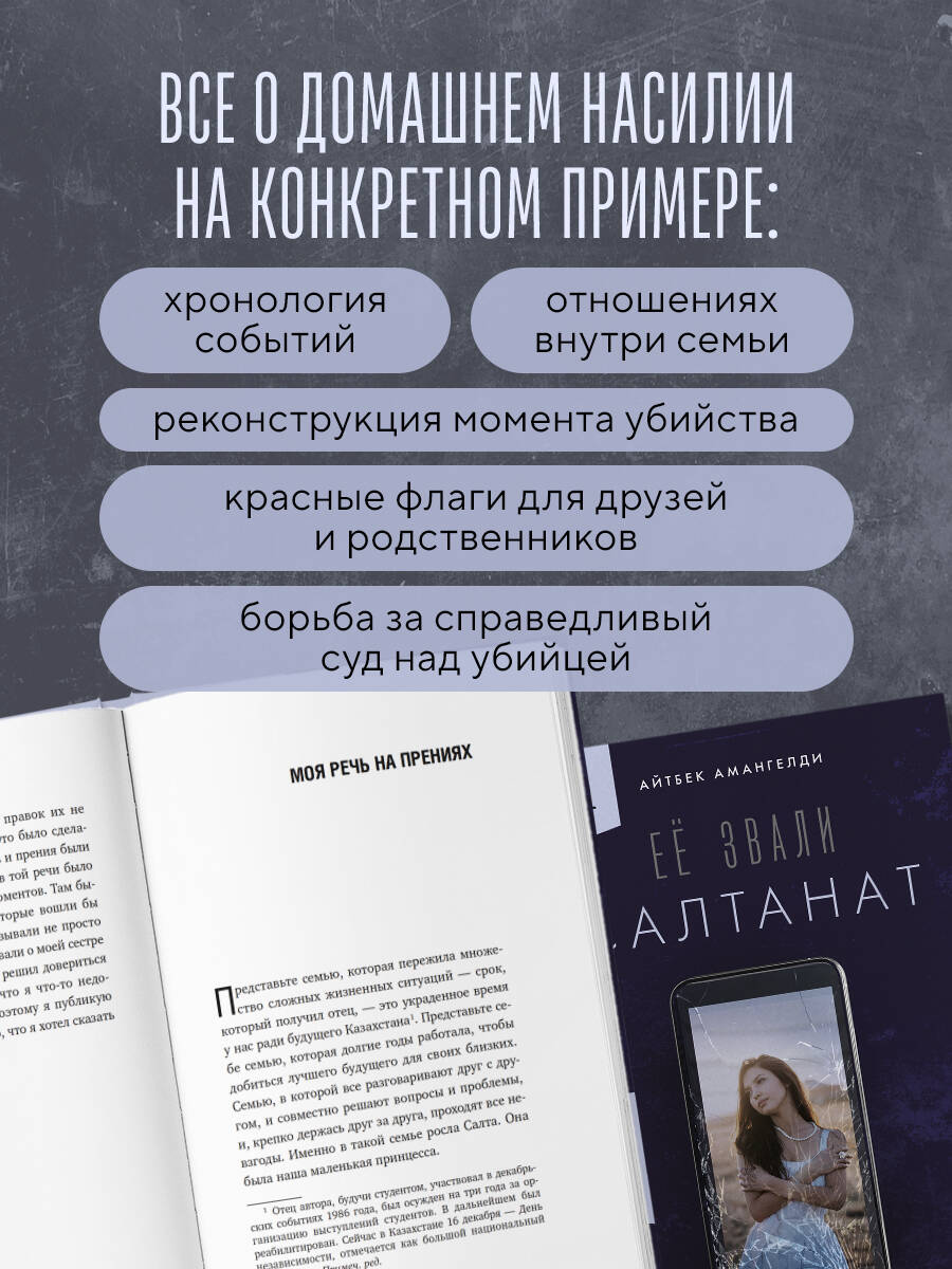 Имя САЛТАНАТ стало символом не только жертвы жестокости, но и справедливого возмездия, столь редкого, если речь идет о домашнем насилии. Автор восстанавливает хронологию событий, подробно рассказывает об отношениях внутри семьи и о том, как, сплотившись, удалось добиться справедливого суда над убийцей. Казахстанский политик Куандык Бишимбаев впервые встретил Салтанат в Астане в сентябре 2022 года. Через некоторое время они сыграли свадьбу по мусульманским традициям. Вскоре после свадьбы Куандык запретил жене разговаривать и встречаться с родственниками и друзьями, отслеживал ее телефонные звонки, текстовые сообщения и местонахождение. Вечером 8 ноября 2023 года в Астане супруги поссорились. Во время ссоры Салтанат сказала, что устала от таких отношений и окончательно решила уйти от Бишимбаева. В ответ муж стал ее избивать… Дело Салтанат Нукеновой стало первым судебным разбирательством по домашнему насилию в Казахстане, которое транслировалось в прямом эфире под наблюдением присяжных. Дело получило большой общественный резонанс и привлекло внимание к проблеме домашнего насилия не только в самом Казахстане, но и за его пределами. История освещалась в том числе иностранными журналистами и повлияла на пересмотр законодательства в отношении домашнего насилия в Казахстане. Книга дополнена редкими фото из домашнего архива автора. В конце книги вы найдете контакты центров России и Казахстана, помогающих женщинам справиться с домашним насилием.| Издательство | ООО "Издательство "Эксмо" |