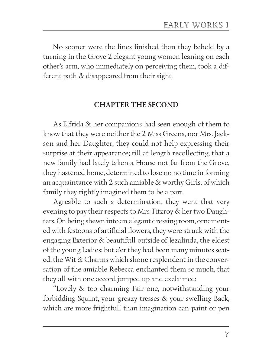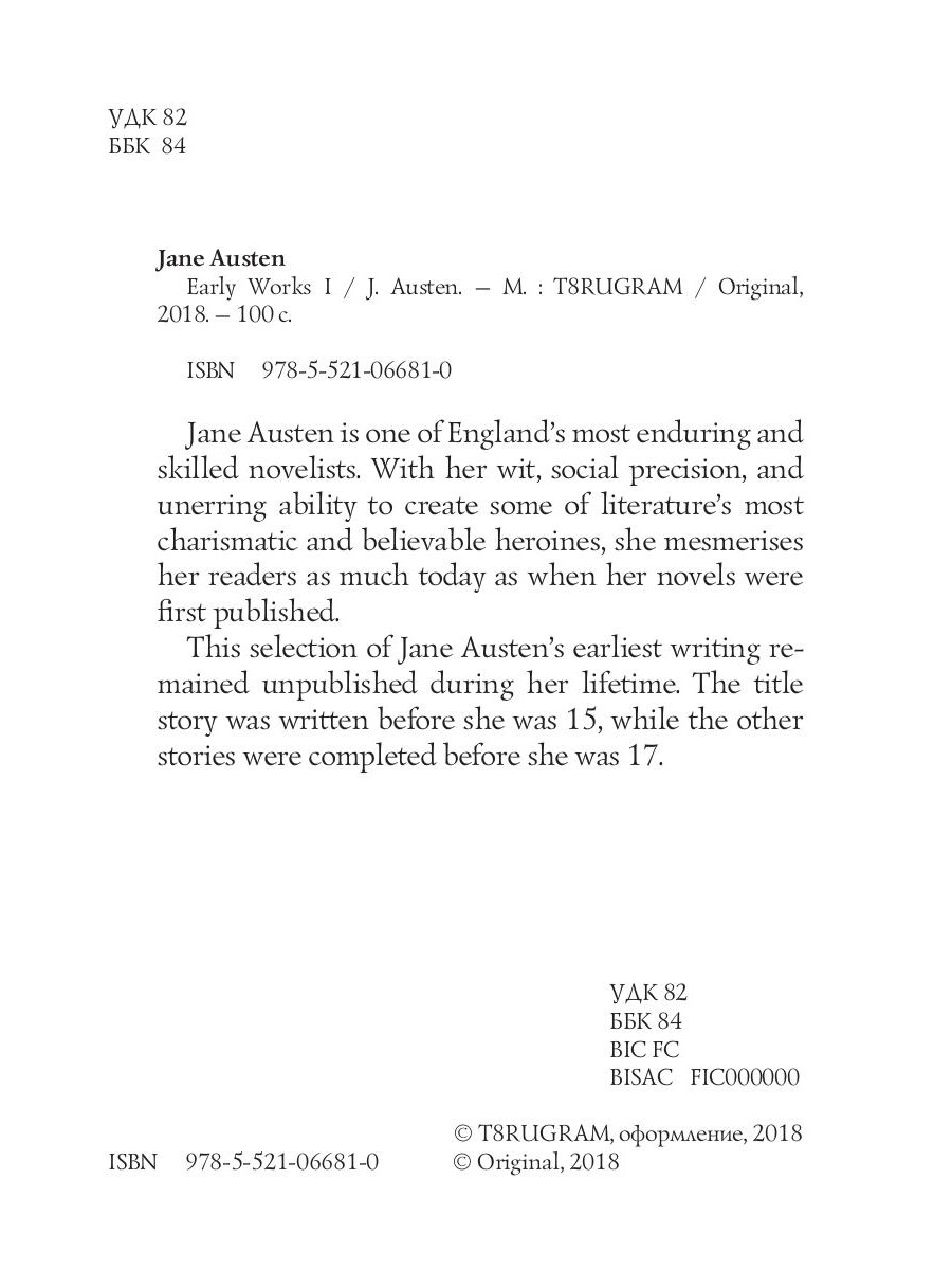 This selection of Jane Austen's earliest writing remained unpublished during her lifetime. The title story was written before she was 15, while the other stories were completed before she was 17.