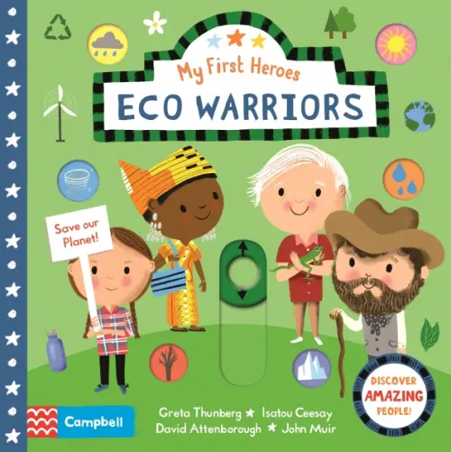 Discover the environmental heroes who are changing our world in "My First Heroes: Eco Warriors!" Push, pull and slide the scenes to find out about Greta Thunberg, David Attenborough, Isatou Ceesay and John Muir, and be inspired by their incredible work.