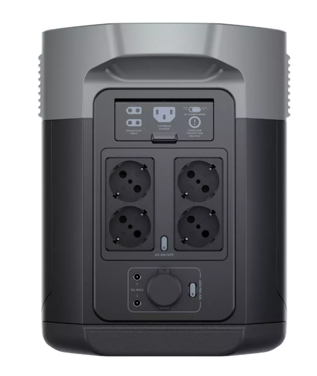 EcoFlow DELTA 2 Max портативная электростанция ёмкостью 2048 Вт·ч и выходной мощностью 2400 Вт (пиковая до 3400 Вт с X-Boost). Оснащена литий‑железо‑фосфатной (LFP) батареей на 3000 циклов до 80 % ёмкости. С помощью двух дополнительных аккумуляторов можно расширить ёмкость до 6144 Вт·ч. Подходит для резервного питания дома, кемпинга и автопутешествий.