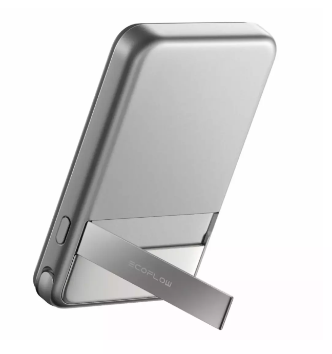EcoFlow RAPID 5000 mAh ультратонкий магнитный power-bank, ёмкостью 5000 mAh (~18-19 Вт·ч), с поддержкой беспроводной зарядки Qi2 (15 Вт) и встроенным кабелем USB-C (30 Вт). Оснащён мощными N52-магнитами для крепления, складной подставкой (kick-stand) для удобного просмотра, быстросъёмной X-Stream технологией зарядки, охлаждением и устойчив к падениям с высоты до 1 м. Отличный «компаньон» в поездках и повседневной жизни.