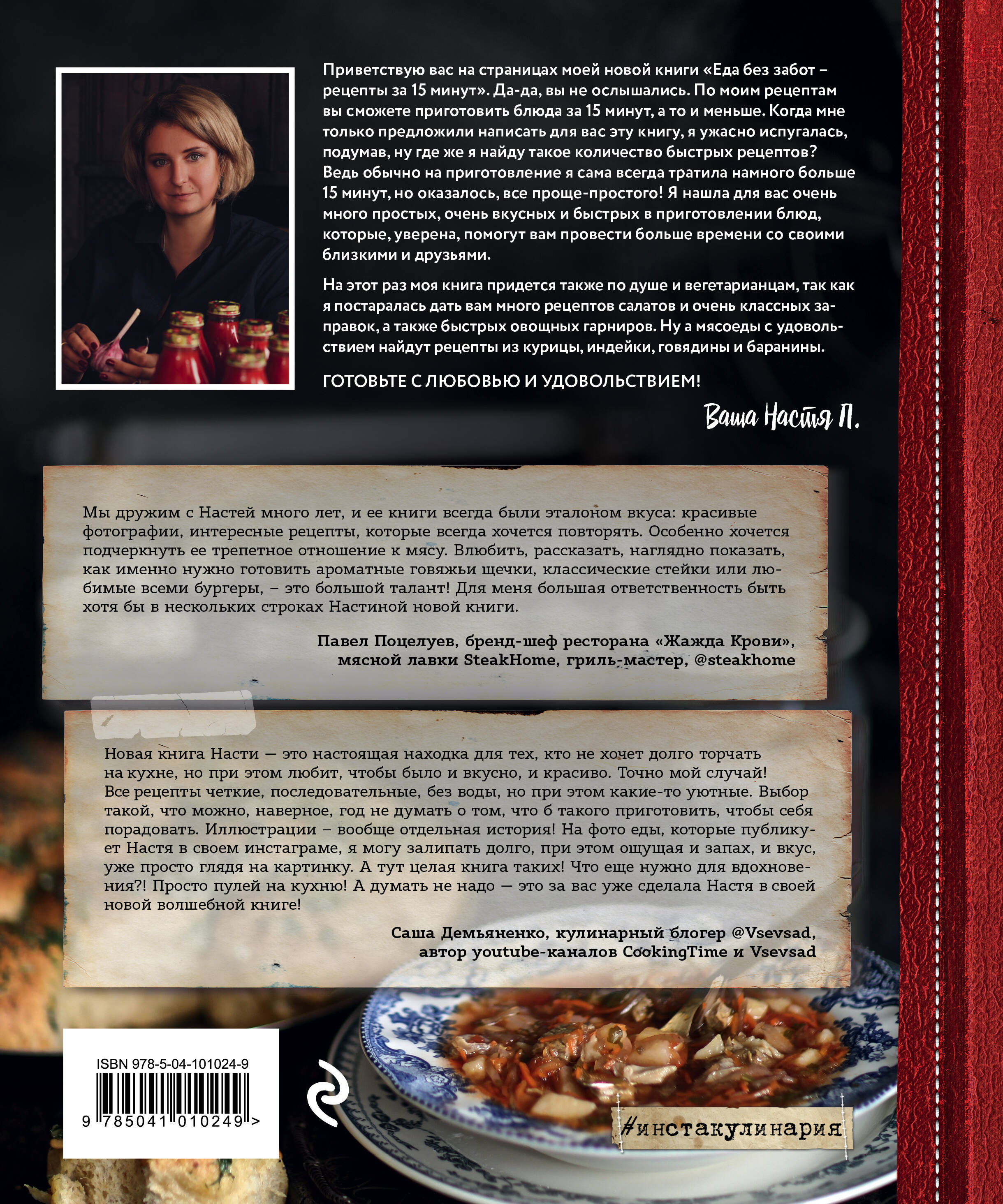 Готовить так, чтобы кухня не стала местом, где вы отбываете наказание, вас научит Настя Понедельник. Автор собрала для вас самые быстрые рецепты, которые вы могли бы приготовить без особого труда. Завтраки и обеды, горячее и десерты, соусы, заправки, салаты даже для тех, кто придерживается вегетарианского типа питания. Следуйте советам и инструкциям автора и готовьте за 15 минут. Настя Понедельник плохого не посоветует!