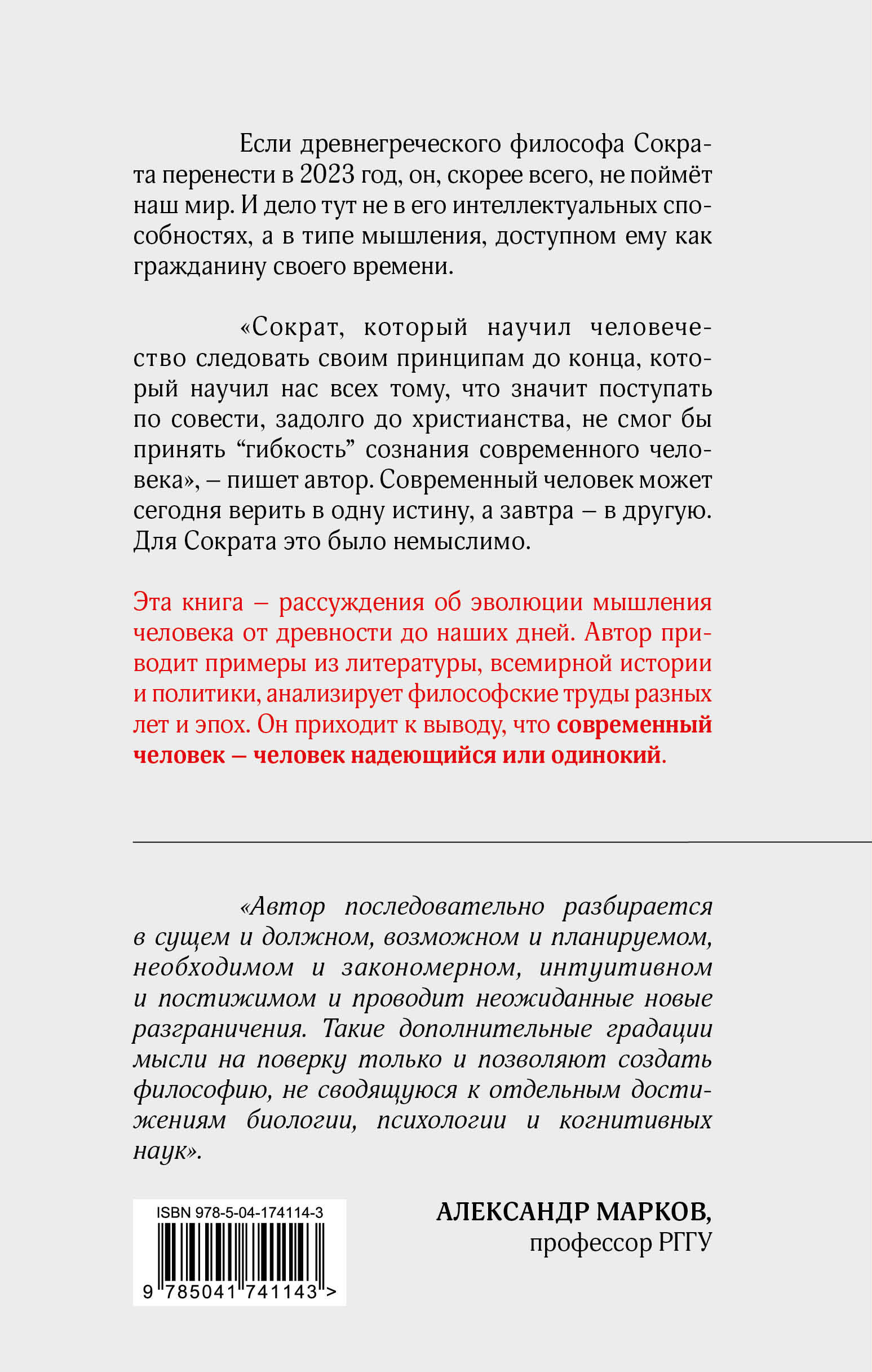 Человечество повзрослело. Современный человек больше не может жить убеждениями. Он перерос «веру» как доминирующий способ формирования мировоззрения. Он уже не верит без оглядки во что бы то ни было: в Будду, теорему Пифагора или естественные неотъемлемые права человека. Скорее, он верит в логически взаимоисключающие вещи. Причём выходит так, что чем сильнее вера в одно, тем сильнее вера и в противоположное. Современному человеку остро необходимо искать новые, по-возможности наиболее твёрдые основания своей духовной, социальной и политической жизни. У него значительно шире взгляды и меньше социальных табу. Он никогда не станет апеллировать к традициям, считая их абсолютным добром, а новшества - злом. Систему взглядов современного человека составляет градация надежд. Современный человек - человек надеющийся. Эта книга - рассуждения об эволюции мышления человека от древности до наших дней. Автор приводит примеры из литературы, всемирной истории, политики; анализирует философские труды разных лет и эпох.