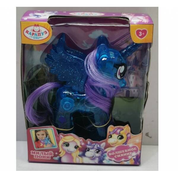 Аннотация: Единорог 10 см пластиковый прозрачный, голубой, светится КАРАПУЗ в кор.2*216шт