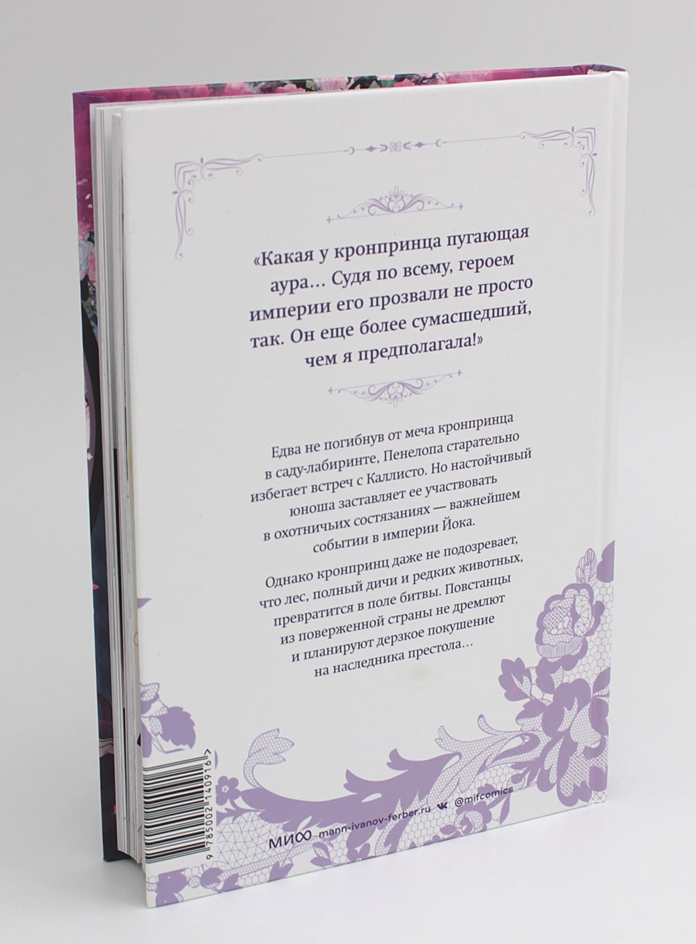 «Какая у кронпринца пугающая аура... Судя по всему, героем империи его прозвали не просто так. Он еще более сумасшедший, чем я предполагала!» Едва не погибнув от меча кронпринца в саду-лабиринте, Пенелопа старательно избегает встреч с Каллисто. Но настойчивый юноша заставляет ее участвовать в охотничьих состязаниях - важнейшем событии в империи Йока. Однако кронпринц даже не подозревает, что лес, полный дичи и редких животных, превратится в поле битвы. Повстанцы из поверженной страны не дремлют и планируют дерзкое покушение на наследника престола…| Издательство | Манн, Иванов и Фербер |