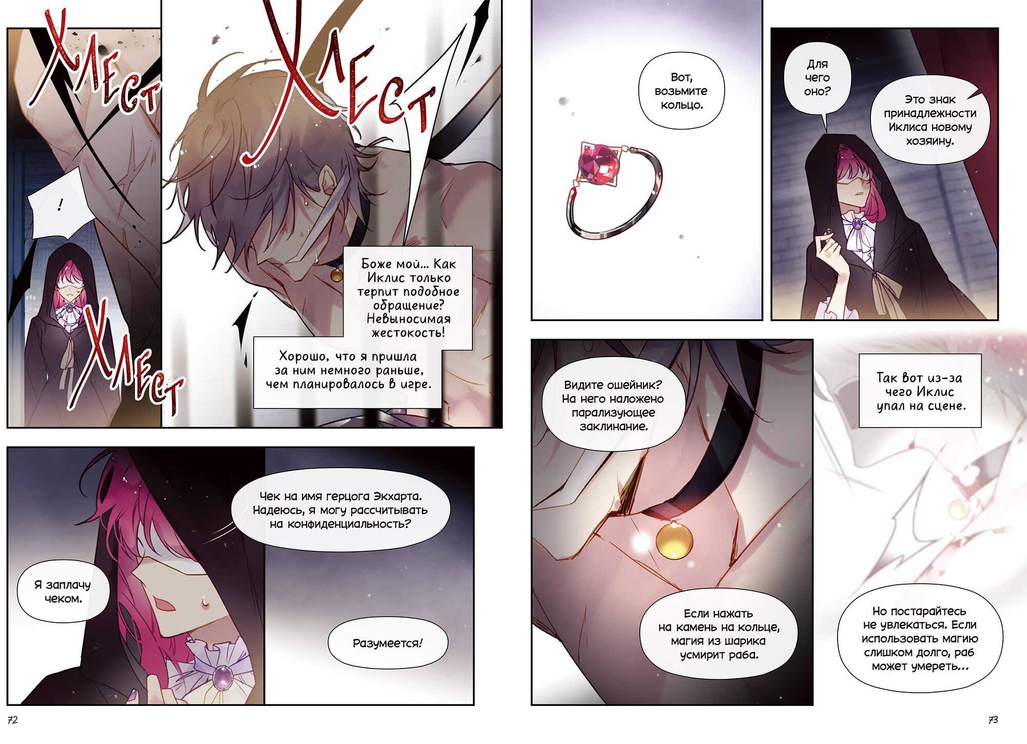 "Я выкупила тебя за сто миллионов золотых монет. Надеюсь, ты оправдаешь мои надежды". Злодейка Пенелопа Экхарт по-прежнему в игре! Девушка не желает подчиняться безумным правилам жестокого виртуального мира и готова на все, чтобы выжить. А для этого ей нужно завоевать одного из мужчин. Пенелопа решается на рискованный шаг и делает ставку на Иклиса - раба из побежденной страны Дельман. Она считает, что путь к его сердцу будет самым легким. Но так ли это на самом деле? Ведь ошибиться нельзя, на кону стоит ее жизнь… Во второй том манхвы вошли эпизоды 19-38. Фишки книги: - Входит в список лучших манхв 2022 года в Корее - Романтическое фэнтези, в котором великолепно все: от сюжета до иллюстраций - Привлекательная главная героиня, в которую влюбляешься с первой страницы - Красочные яркие иллюстрации, которые хочется рассматривать бесконечно. Галерея в телефоне точно заполнится скринами из комикса - Живые персонажи, которым сочувствуешь и с удовольствием за ними наблюдаешь Для кого книга: Для подростков и взрослых. Для тех, кто любит онлайн-игры, мангу и аниме. Для любителей яркой рисовки и классных комиксов. Для тех, кому понравилась первая часть, и кто с нетерпением ждет продолжения истории!