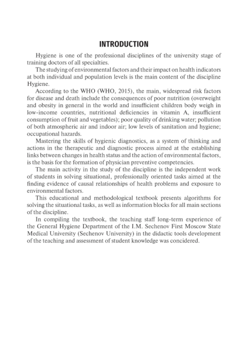 This textbook is devoted to the assessment principles of various environmental factors, as well as the body?s response to their eff ects. A large number of tasks helps to master the practical skills of hygienic diagnostics, which are the basis for the formation of doctor professional competencies of any specialty. The textbook is for students of the medical, stomatological and pharmacy faculties of Medical University, studying in English.| Издательство | ГЭОТАР-Медиа |