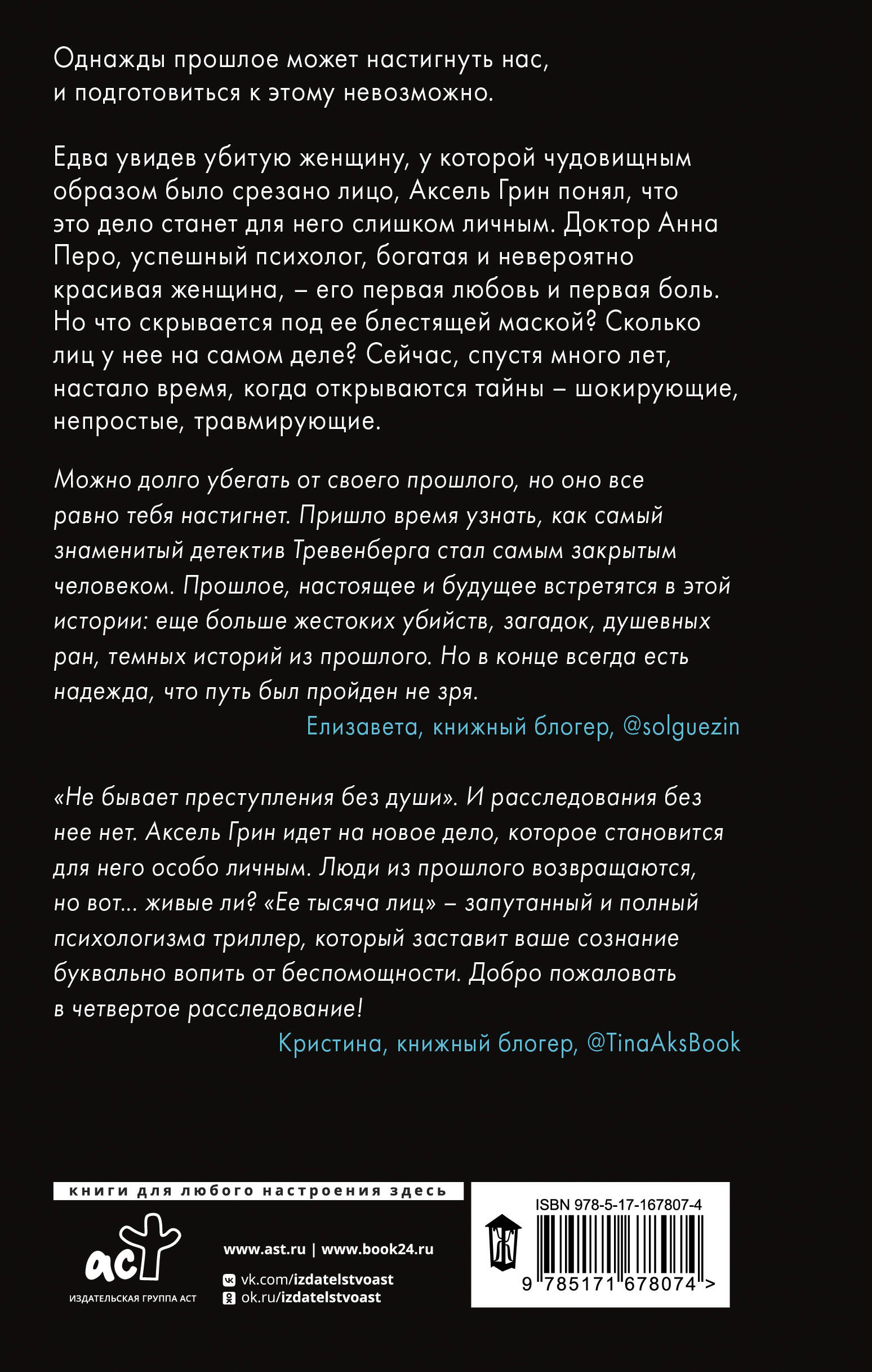 - Психологический триллер-детектив с вайбом скандинавского нуара. Четвертое расследование детектива Акселя Грина. - Великолепно проработанная история с неоднозначными героями, раскрывающая психологические травмы и непростые личные отношения. У каждого из героев - своя травма. Увлекательный сюжет, в котором одна загадка сменяет другую. - Автор - профессиональный психолог, а потому характеры и проблемы выписаны тщательно и очень достоверно. - Рекомендуем роман к прочтению любителям скандинавского детектива, книг Ю Несбё, Самюэля Бьорка, Майка Омера, Рэйчел Кейн. - Авторская серия «Город убийц».