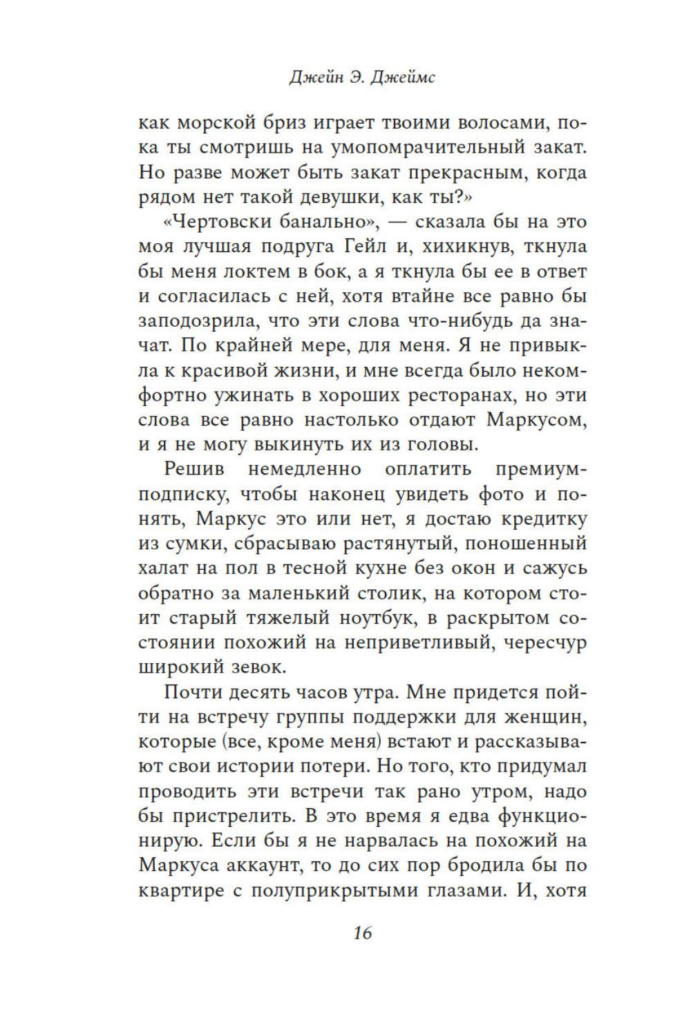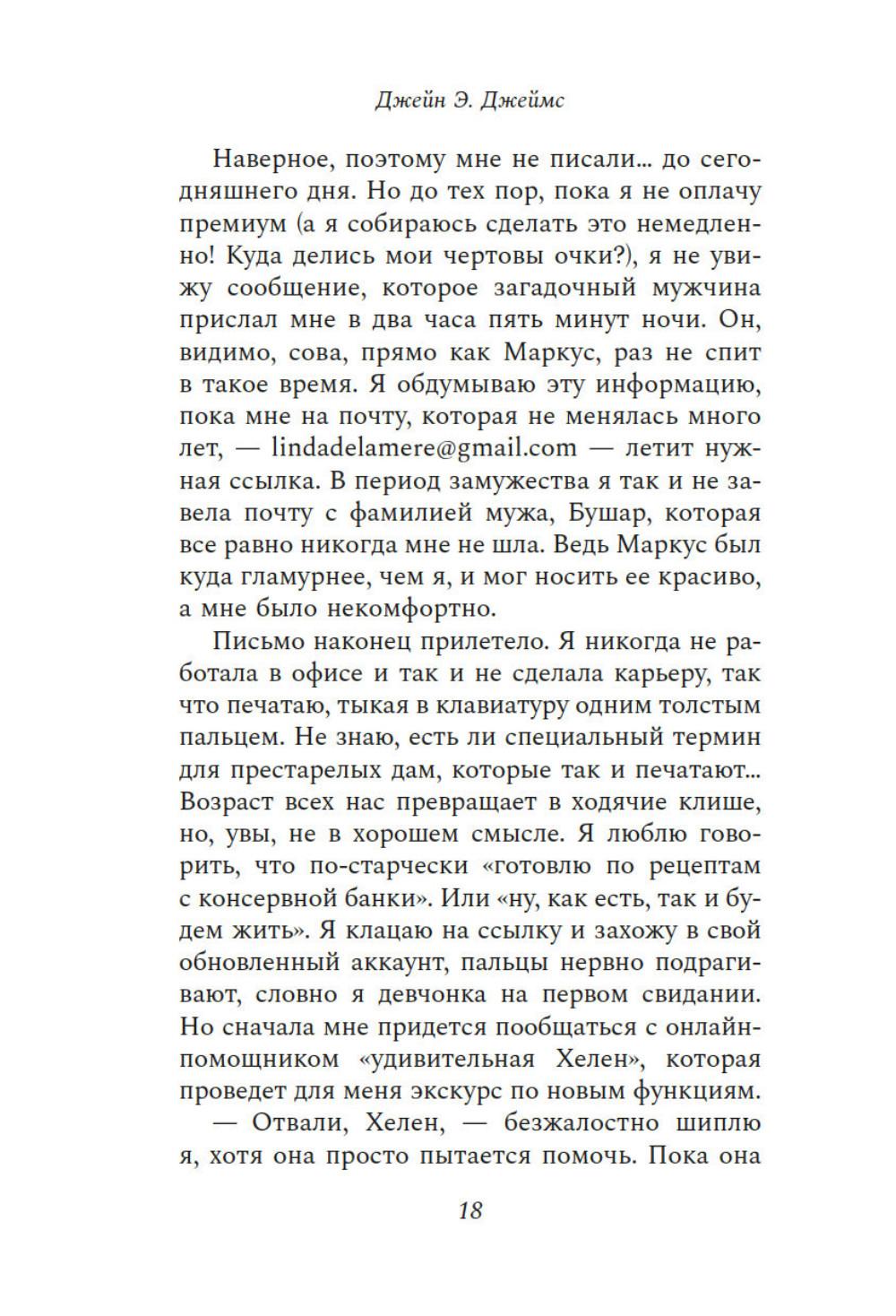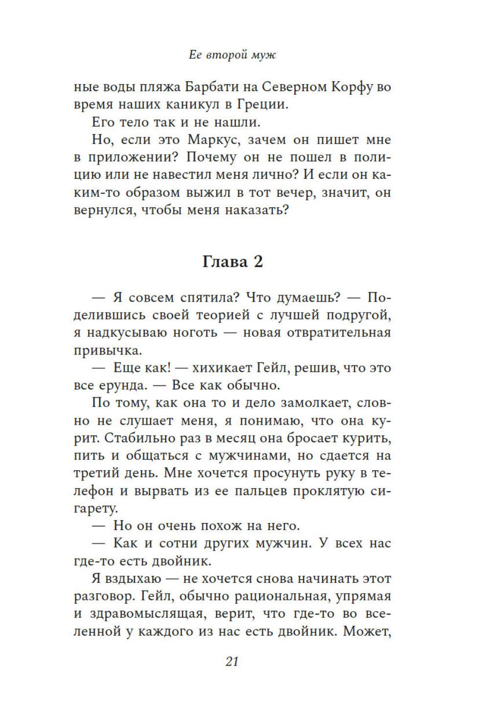 Ваш муж мертв. Он никогда не вернется. Так почему же он на сайте знакомств приглашает вас на свидание? У Линды были преданный муж, взрослые дочери и великолепный дом. Все это она променяла на любовь и брак с человеком, которого едва знала. Но сказка продлилась недолго. Теперь Линда без гроша в кармане живет в съемной квартирке. От скуки она регистрируется на сайте знакомств и находит анкету мужчины, как две капли воды похожего на ее второго мужа. Но это невозможно - ведь он утонул у берегов Корфу восемь месяцев назад. Линда понимает, что мужчина, за которого она так опрометчиво и быстро вышла замуж, хранил от нее секреты - мрачные пугающие. И единственный, кто может ей сейчас помочь, - это человек, имеющий все основания не вмешиваться. Ее первый муж.| Издательство | Азбука |