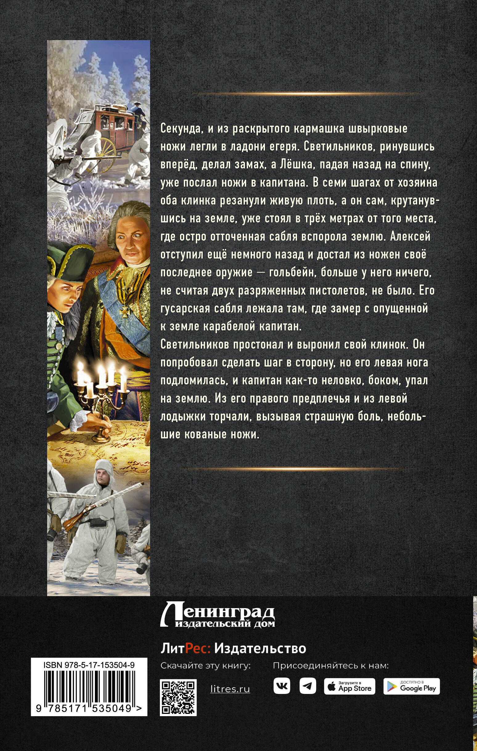 К 1772 году Российская империя разгромила основные военные силы турок на Дунае и в Крыму, сожгла османский флот в Средиземном море и заняла большие территории. Во главе особой команды егерей, с отцовским штуцером в руках, Лёшка прошёл через десятки сражений и отдельных схваток. Он, уже подпоручик, пролил свою кровь в битвах и выслужил этот чин по праву. Но впереди особая, тайная война с врагами империи, с теми, кому не даёт покоя слава и усиление его Родины. И в этой войне, чтобы выжить, пригодятся все его умения и навыки, как из этого века, так и из далёкого будущего.| Издательство | ИЗДАТЕЛЬСТВО "АСТ" |