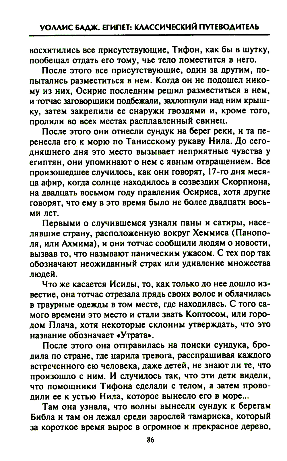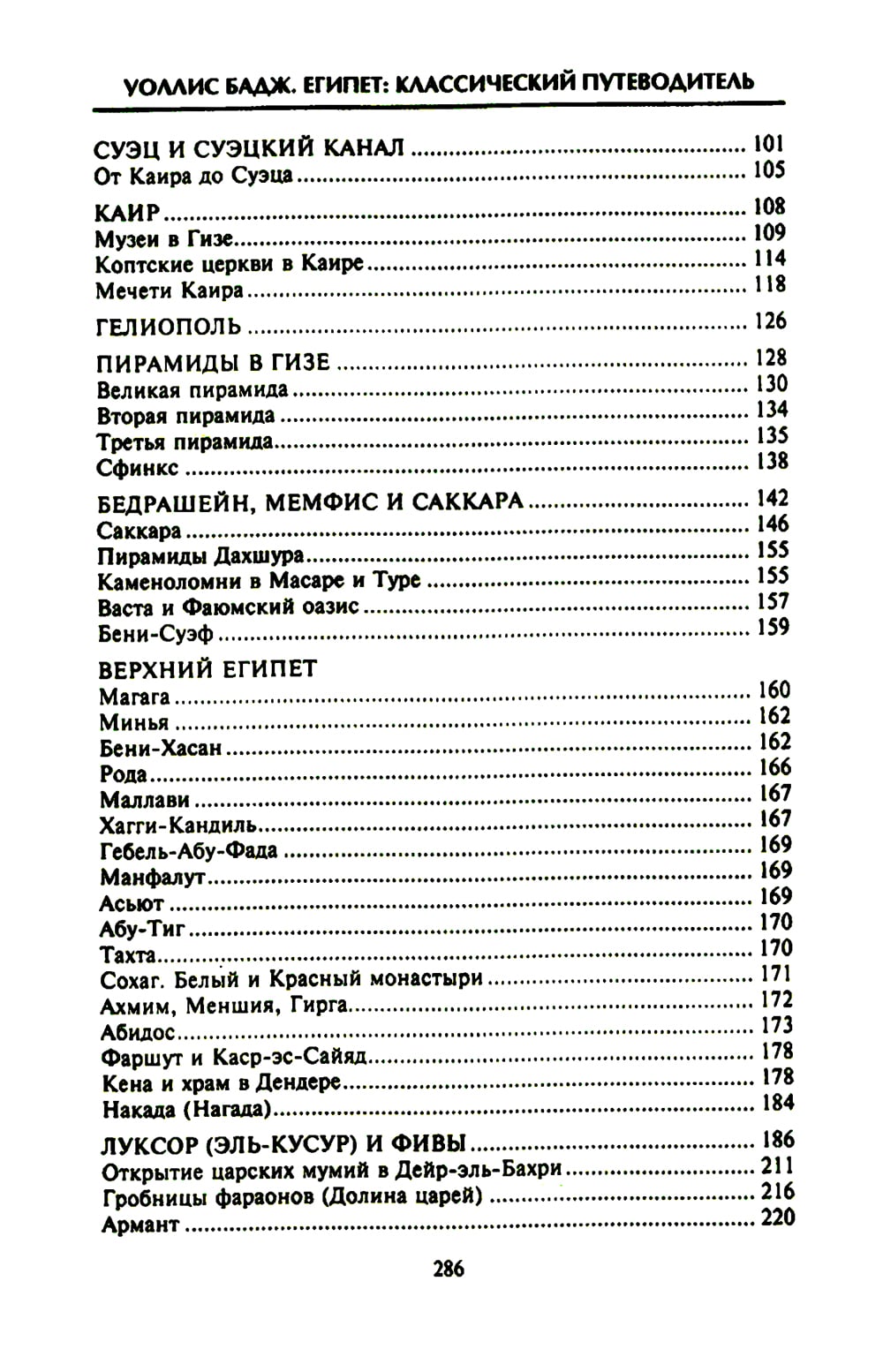 Известный египтолог Уоллис Бадж составил свой путеводитель для знаменитого туристического агентства «Томас Кук и сыновья». Автор сосредоточился на памятниках архитектуры и истории, расположенных по обеим сторонам Нила, между Каиром и Вади-Хальфа. Краткий обзор египетской истории, включая великое прошлое Египта 4400-450 гг. до н.э, сопровождается яркими, живыми картинами жизни древних и современных автору египтян. Особое внимание Бадж посвятил египетскому иероглифическому письму и религиозным верованиям народа Египта. Глубокие знания ученого убеждают в достоверности сведений, оригинальный живой авторский взгляд сообщает особую прелесть описаниям памятников Александрии, Каира, Гелиополя, Суэцкого канала, пирамид Гизы и многих других достопримечательностей Египта.| Издательство | Центрполиграф |