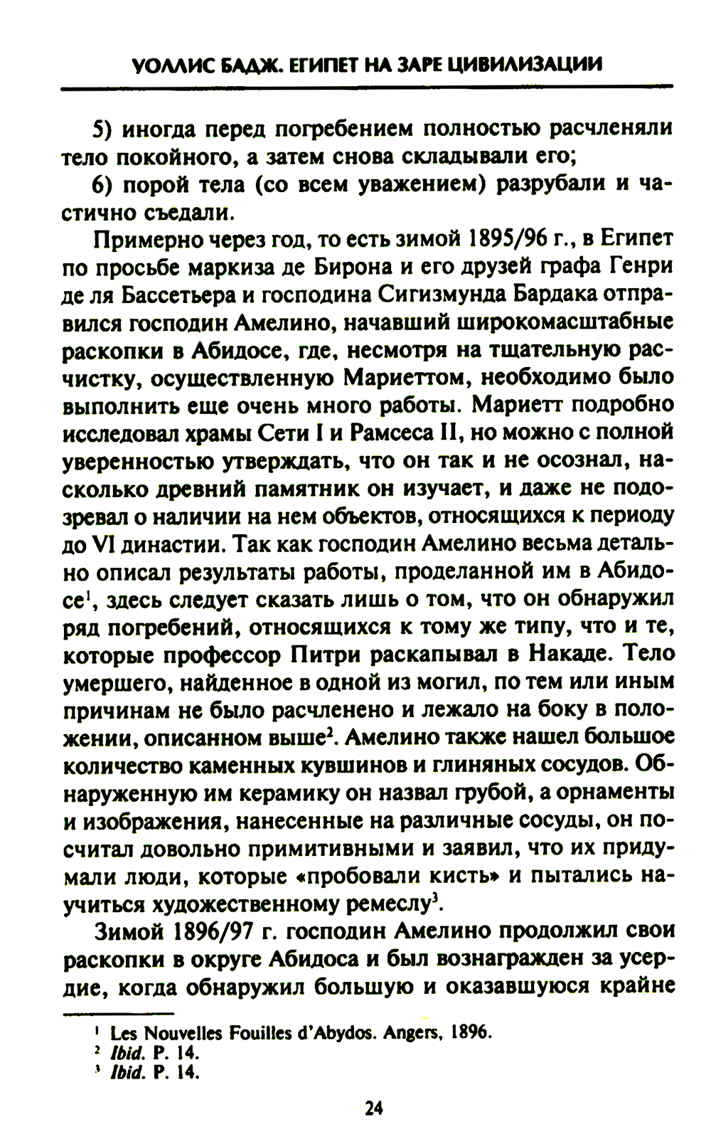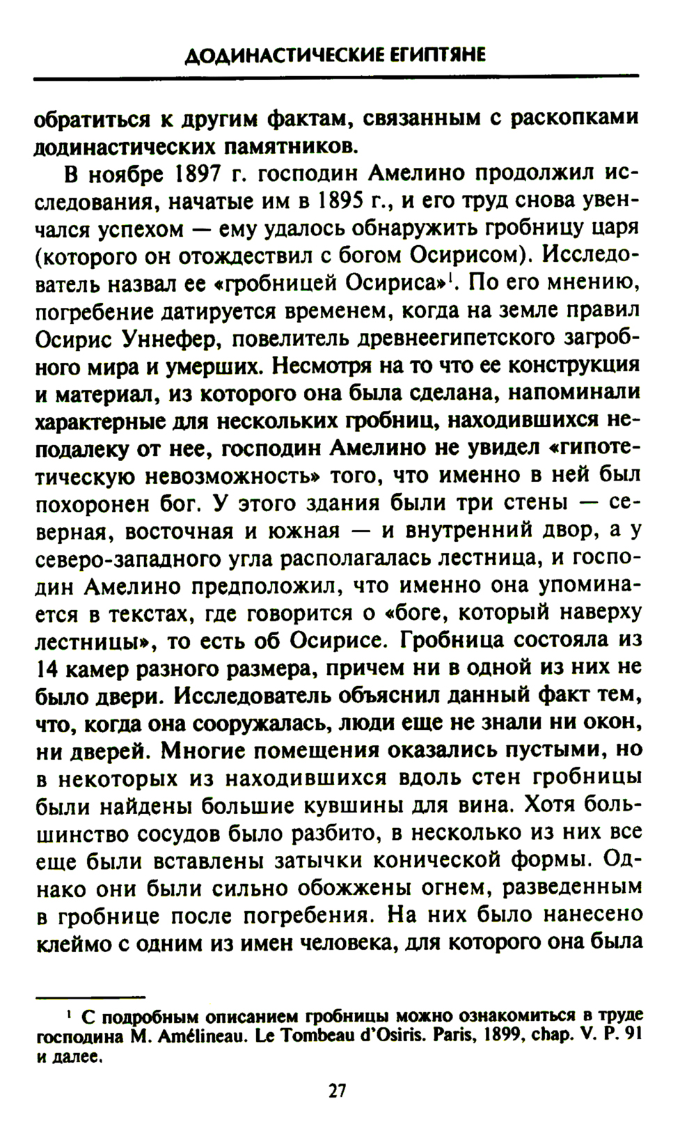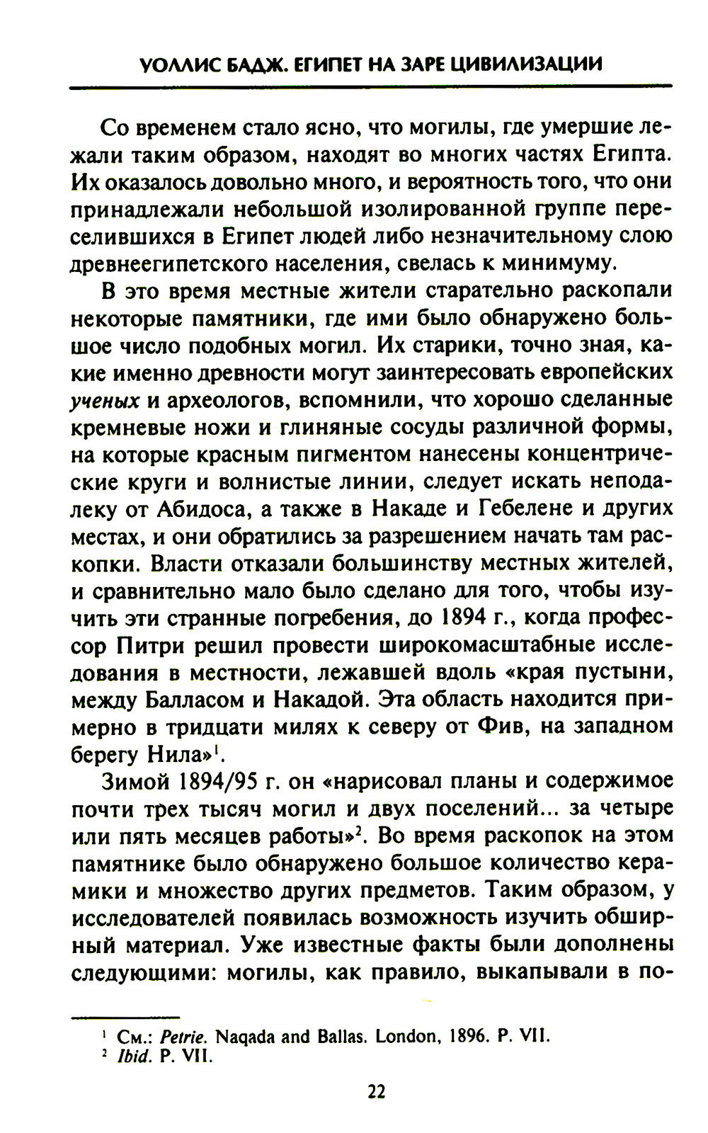 Известный английский востоковед и археолог, сотрудник Британского музея в течение многих лет Уоллис Бадж всю свою жизнь посвятил изучению Древнего Египта, о чем свидетельствуют около ста тридцати написанных им исследовательских работ. В этой книге Бадж прослеживает жизнь Египта начиная с периода позднего неолита и заканчивает временем правления первых трех царских династий. Значительную часть повествования автор посвящает результатам археологических раскопок, которые послужили источником новых сведений о ходе истории Египта и древности его цивилизации. Внимательно и скрупулезно автор анализирует культурные традиции египтян: религиозные верования, погребальные обряды, особенности письменности, изучает предметы обихода, одежду и оружие. Особую главу Бадж посвящает хронологии правления царских династий.| Издательство | Центрполиграф |