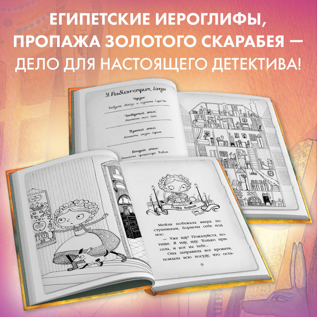 Папа Мейзи - моряк, все время в плаваниях, и девочка очень давно его не видела. Папа не забывает свою дочку, вот и сейчас прислал подарок, ожерелье с подвеской. Подвеска покрыта загадочными египетскими иероглифами, и Мейзи, как начинающему детективу, не терпится расшифровать надпись. Разумеется, тут требуется помощь знатока. Но у крупнейшего ученого по Древнему Египту своя беда - пропал золотой скарабей, гордость его коллекции. «Так это целых два египетских ребуса!» - обрадовалась девочка и с жаром принялась за эти загадки. Образцовый детектив для детей - тайны, которые расследует Мейзи Хитчинс, под силу разгадать ребёнку! Неутихающая популярность этой серии свидетельствует, что секреты Лондона XIX века волнуют... и наших детей! Здесь полно приключений, трогательных и смешных моментов и удивительных фактов из истории викторианского Лондона!| Издательство | ООО "Издательство "Эксмо" |