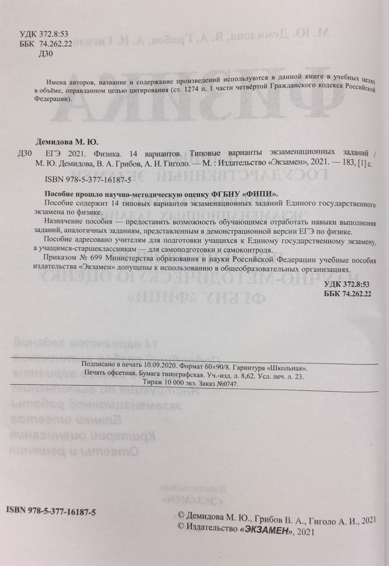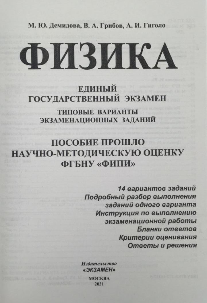 Аннотация: ЕГЭ 2021 ФИПИ Физика. Типовые варианты экзаменационных заданий. 14 вариантов